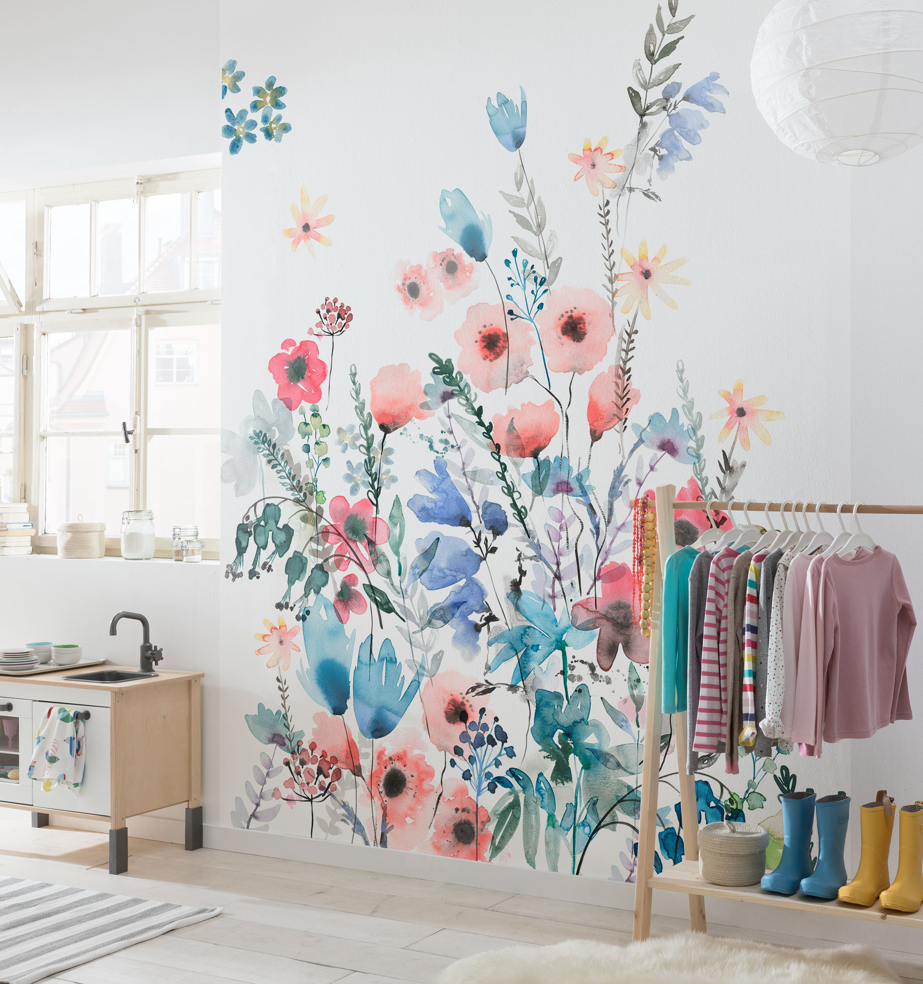 If you are looking for a colourful highlight for your home, you’re sure to hit the mark with this mural. The colourful floral motif brings a beautiful flower meadow to your wall and decorates your home with a stylish look.
