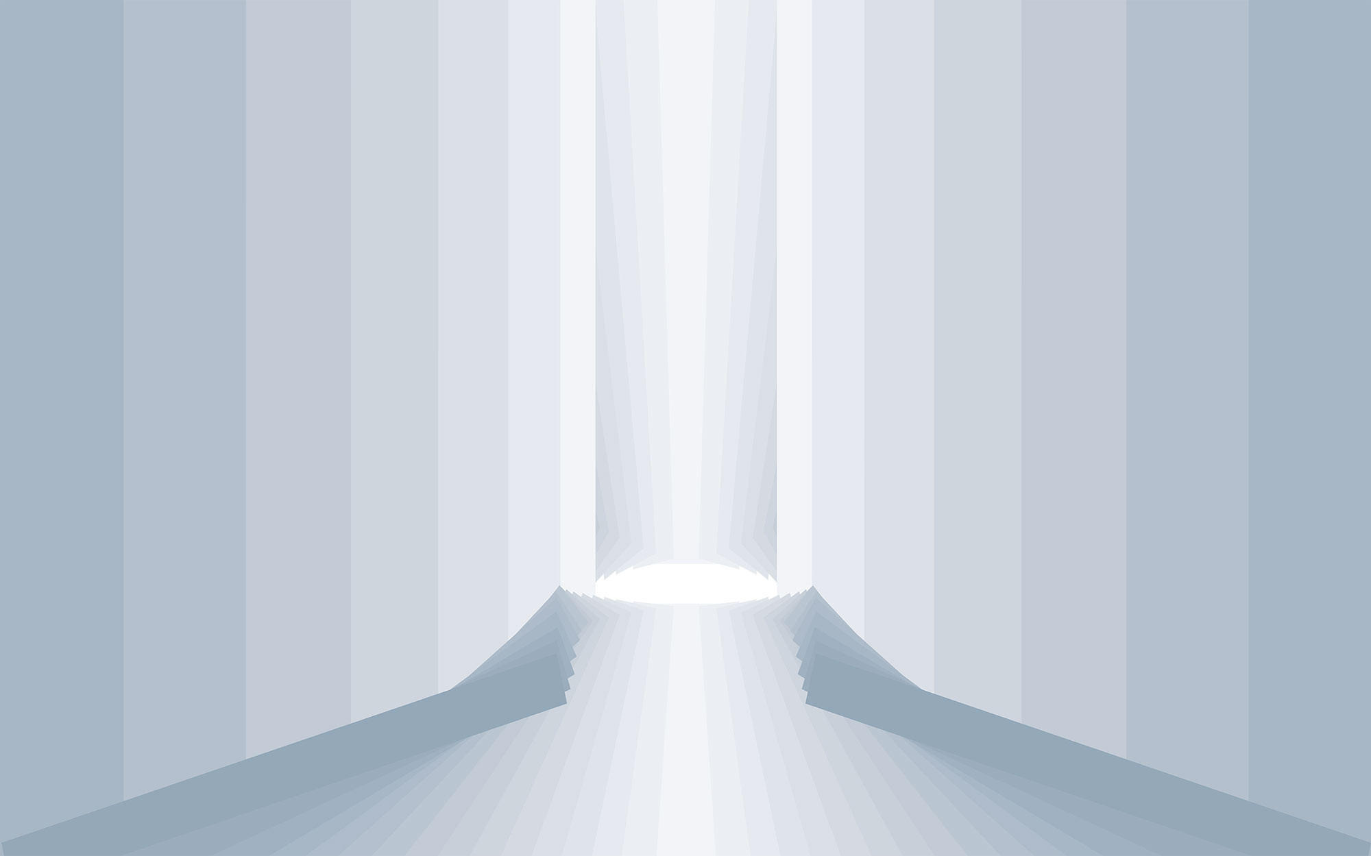 Auroville Pillar bleu: Basilika des Lichtes und der Illusion in blau, grau.