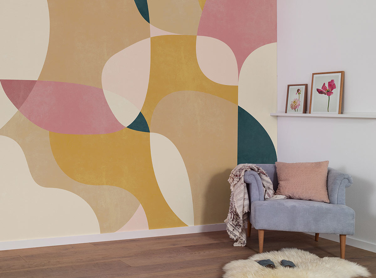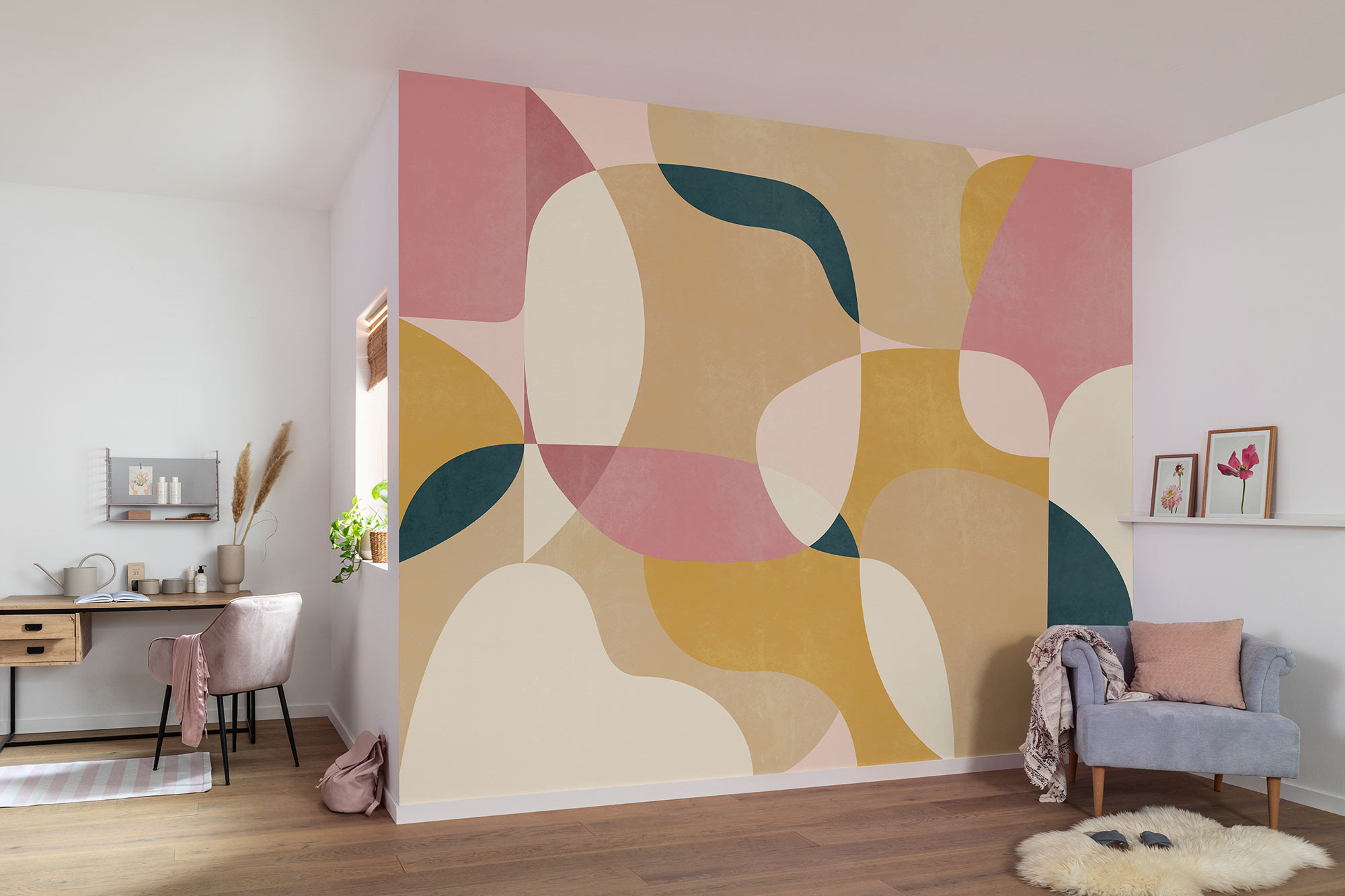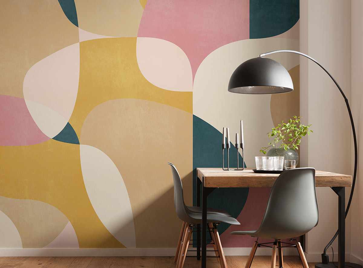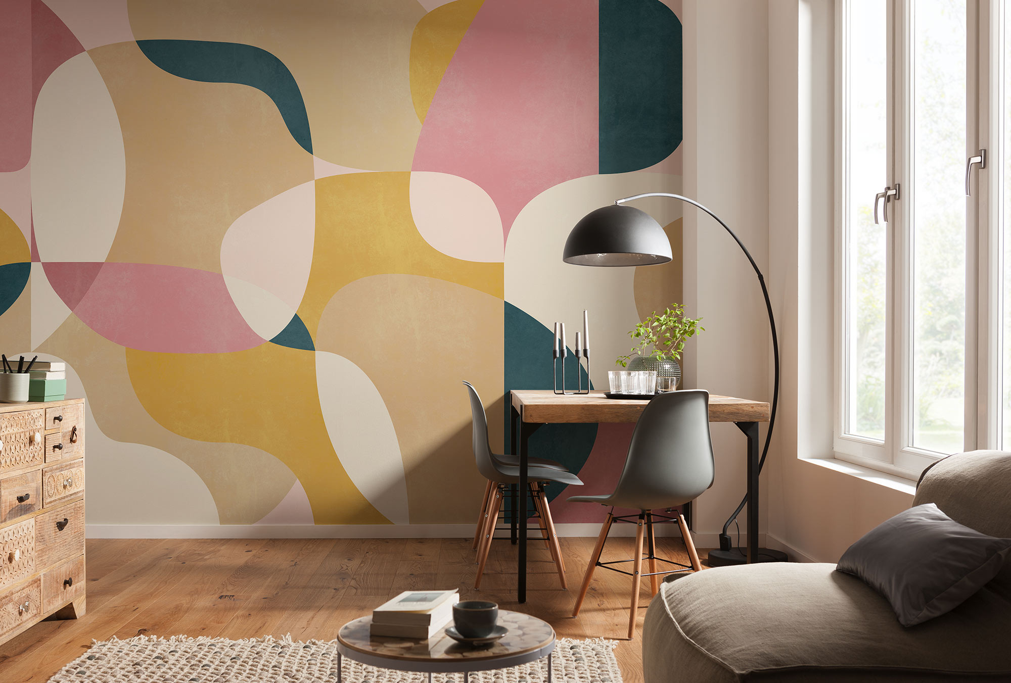 These patterns combine harmoniously to create an unusual and creative wallpaper design. The balanced colour palette combines a wide variety of tones, which together create a perfect overall picture. This photomural is guaranteed to be a visual highlight in any room and gives your interior a unique elegance.