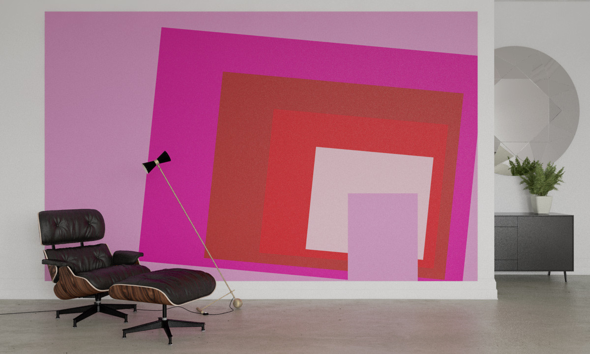 Blocking Oblique rose-red: Eine wandfüllende, geometrische Kettenreaktion.