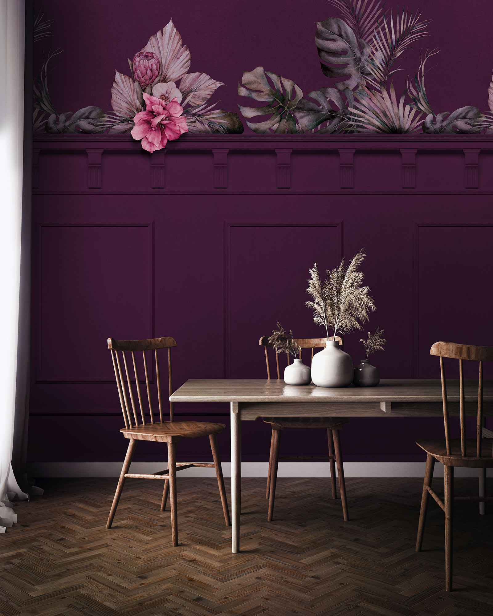 The floral elements protrude from the stucco and lend the room a picturesque and romantic atmosphere. The fascinating design is an eye-catcher in any room and creates an elegant ambience.