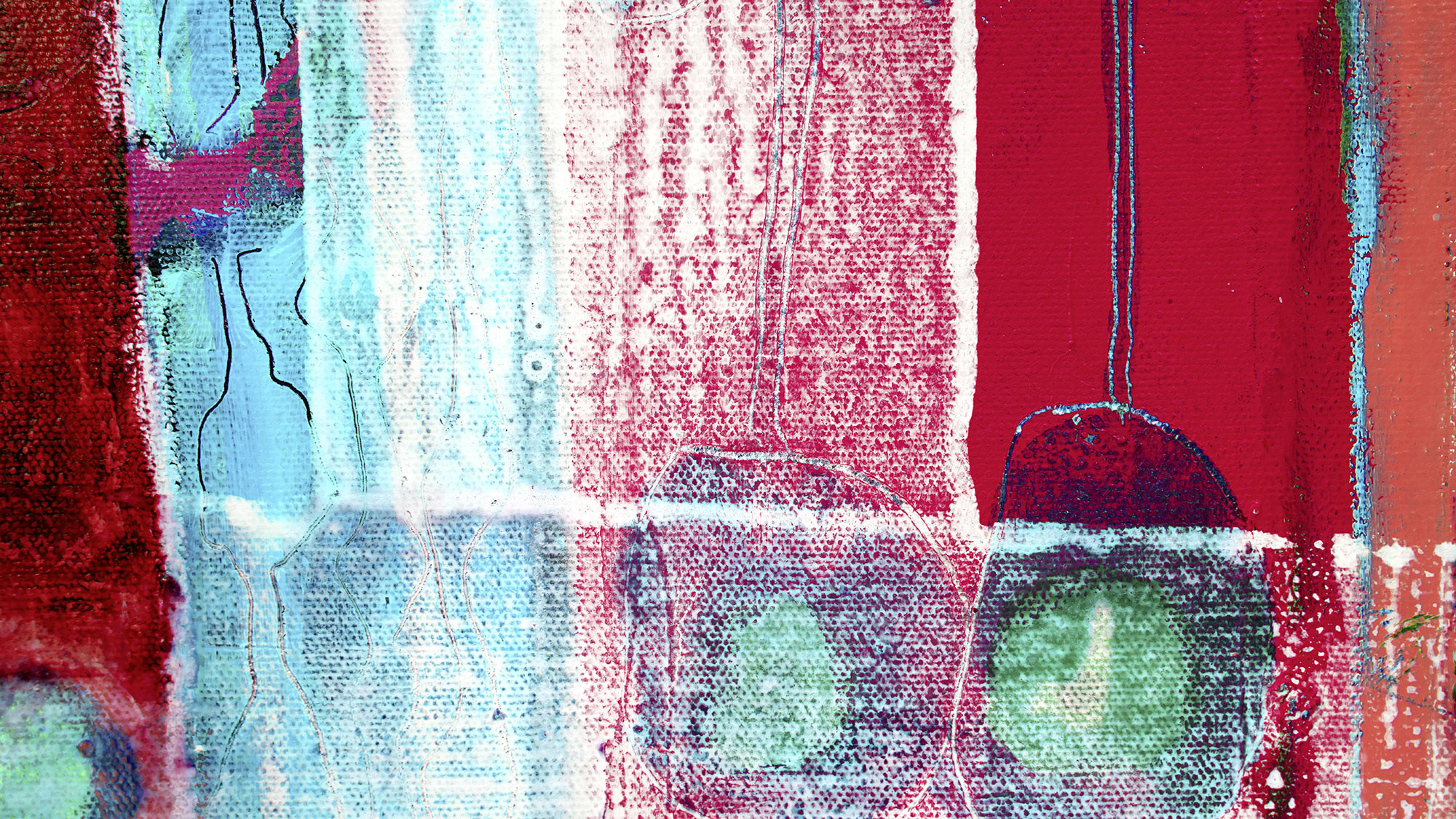 Bottles Lifting: Glasballons mit dünnen Hälsen warten in vernebelter Landschaft auf Ihren Start in türkis, rot.