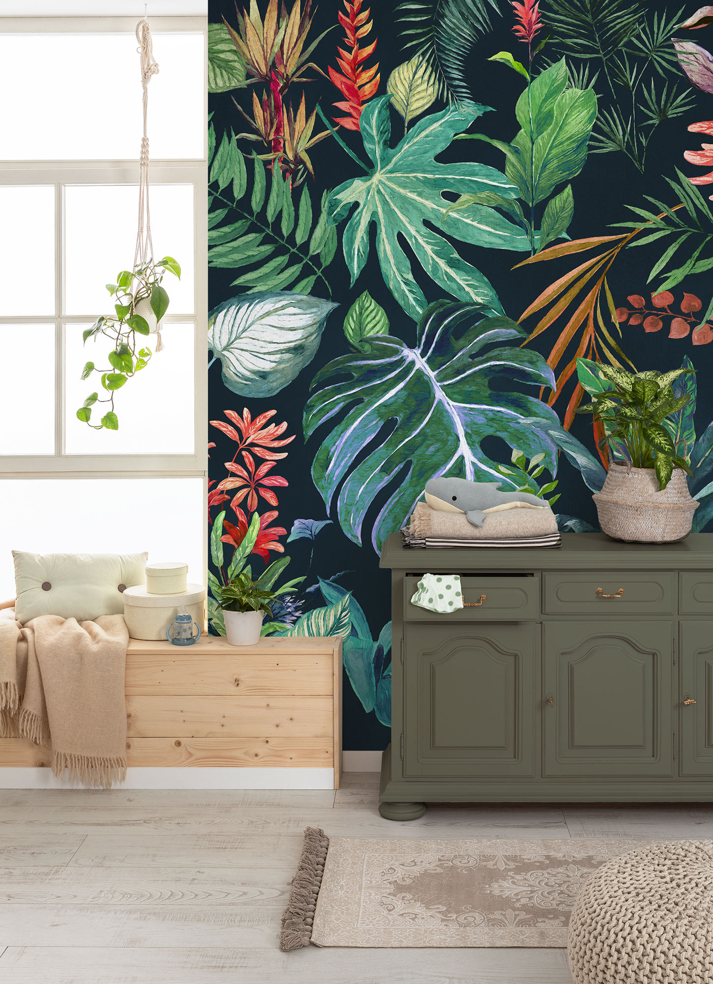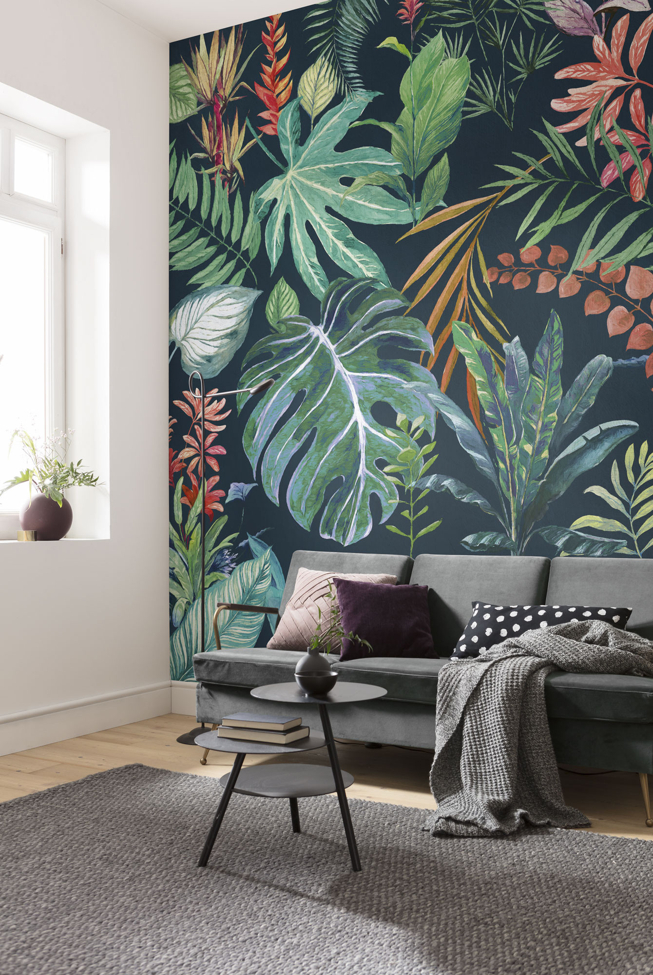 This photo wallpaper gives walls an unusual look in both children's rooms and living This Photomurals wallpaper gives walls an unusual look in both children's rooms and living rooms. The different types of plants come into their own perfectly in combination with the dark background and make boring rooms look different in an instant.