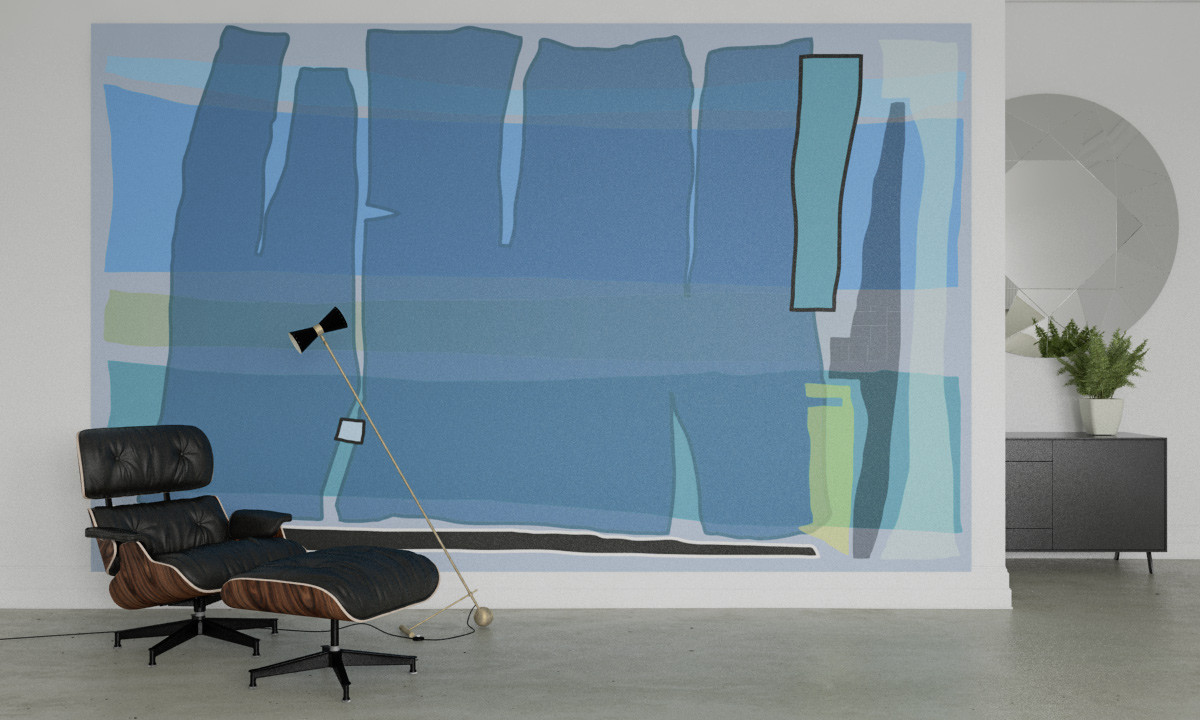 Composition 4 blue-petrol: Biomorphe Architektur in charmanten Farbkompositionen.