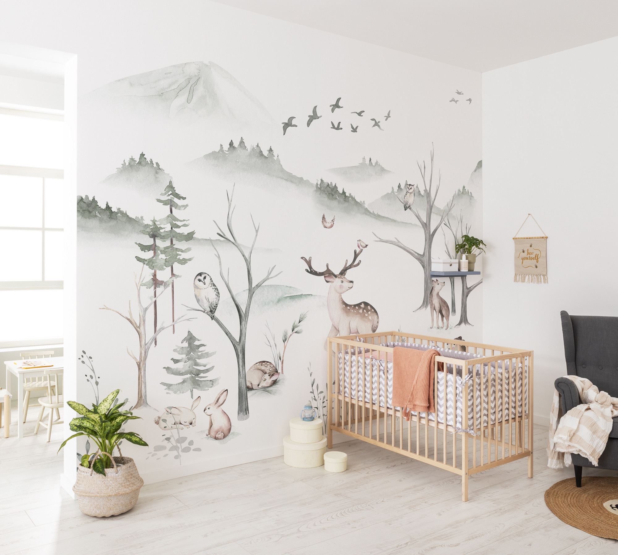 With this magical photomural in the nursery, the fox, rabbit, bear and deer say good night and accompany you in your dreams!