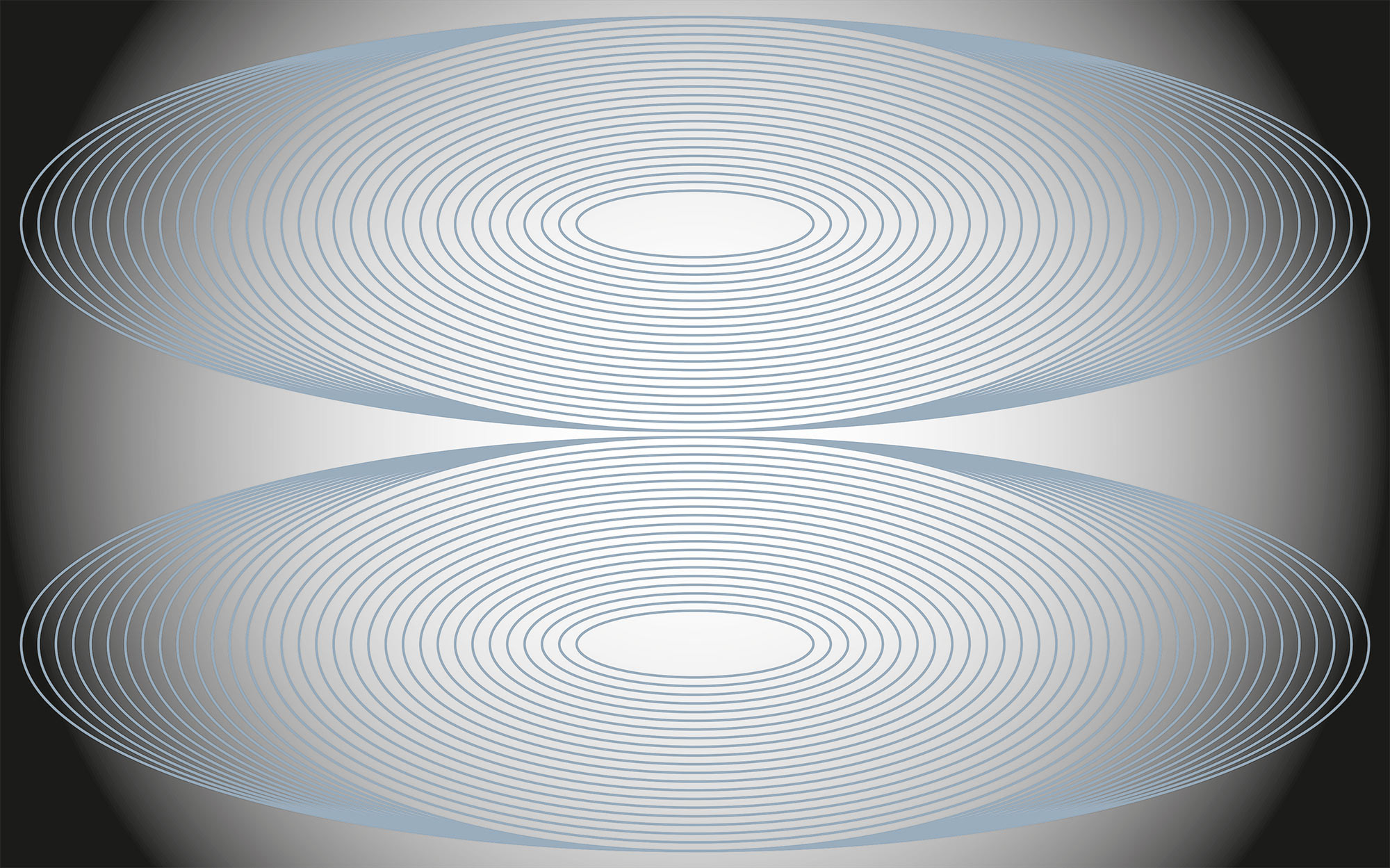Eyes Wide Open Duo bleu-grey-black: Zarte Ovale verschmelzen zu einem fragilen Mandala.