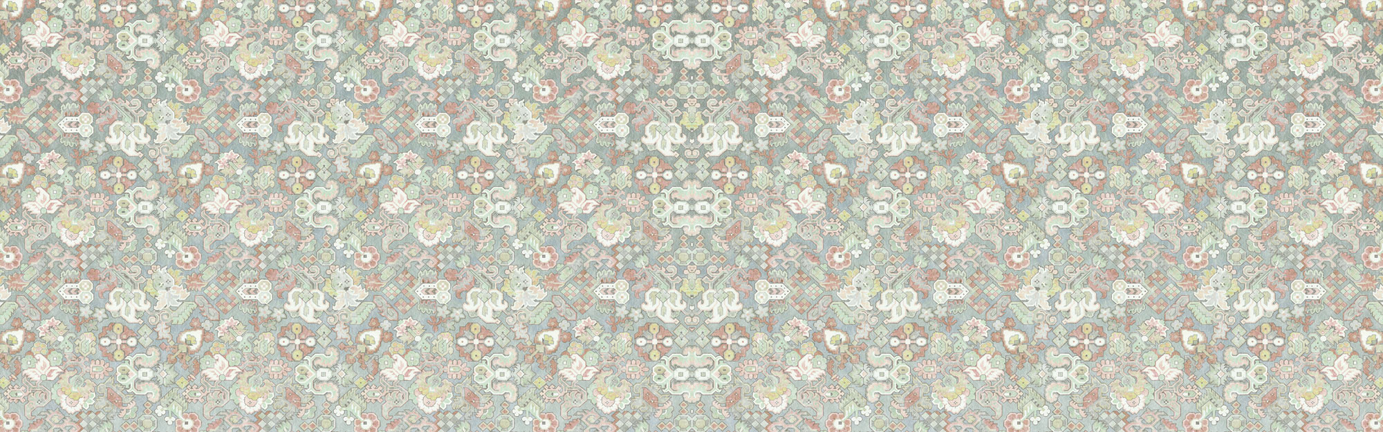 A collage of dainty flowers and blossoms in a contemporary ethnic look.