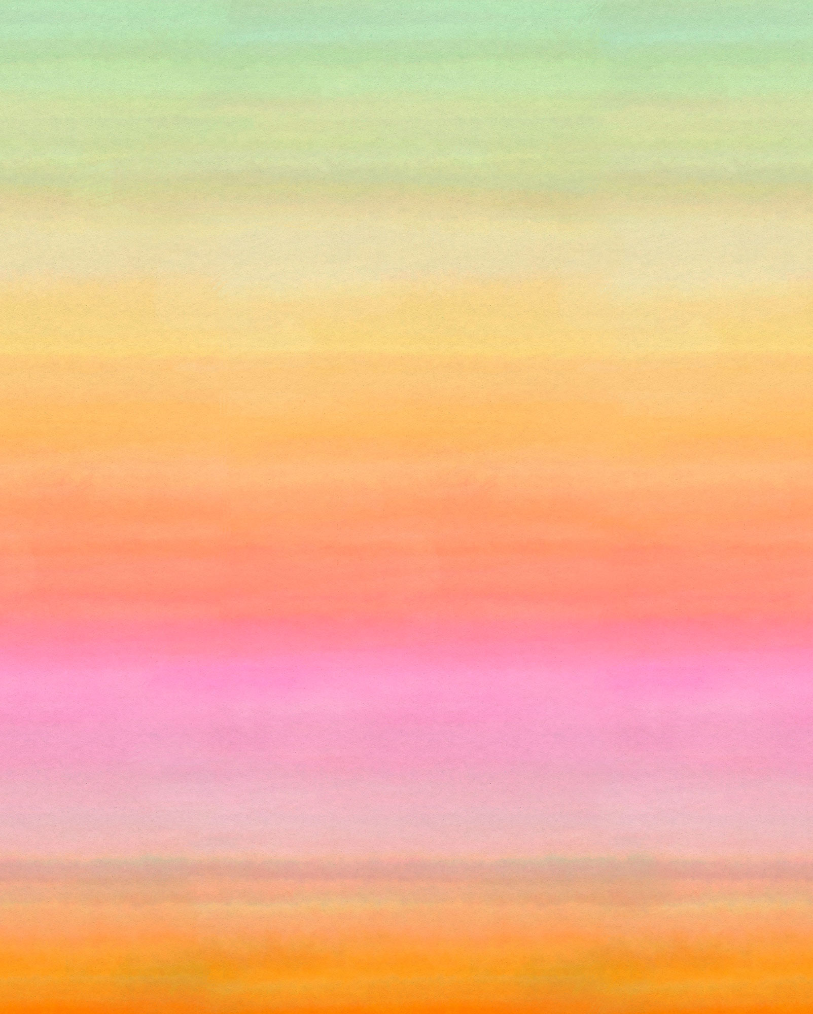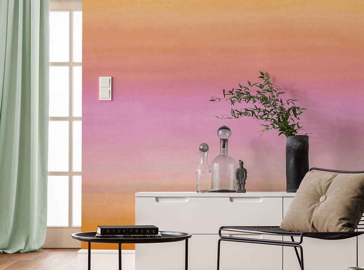 A colour spectrum that spreads positivity and optimism in the rooms. The gentle colour gradient leads from delicate turquoise and orange tones to brighter shades of pink, creating a breathtaking wall design.