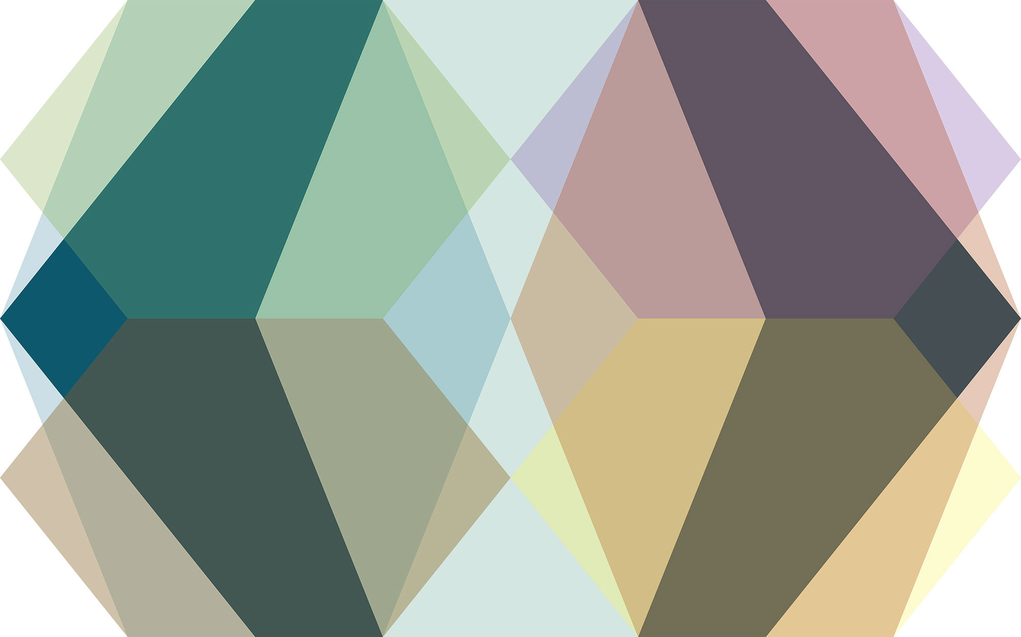 Gem Stone Kite green-brown-rose: Funkelnde Geometrie in blau, schwarz, blau, grün, braun, weiss.