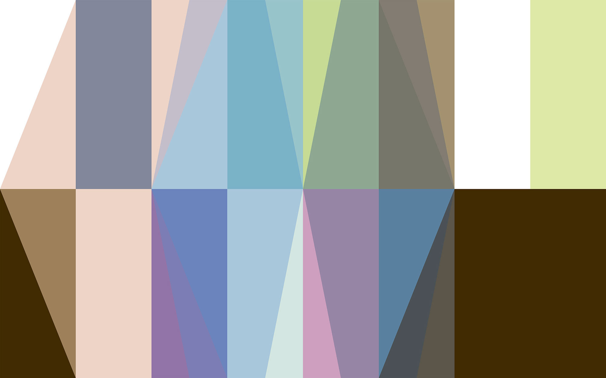 Gem Stone Rhombus apricot-blue-mocca: Funkelnde Geometrie in blau, grün, weiss, ocker, grau.