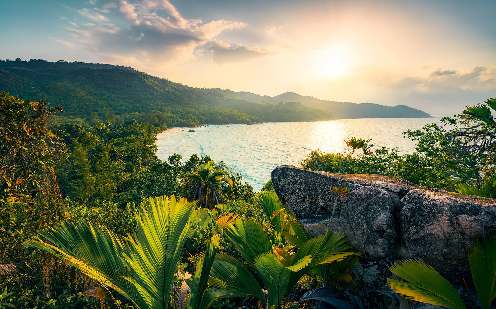 The view across the jungle directly to the sea is unique to the Seychelles.