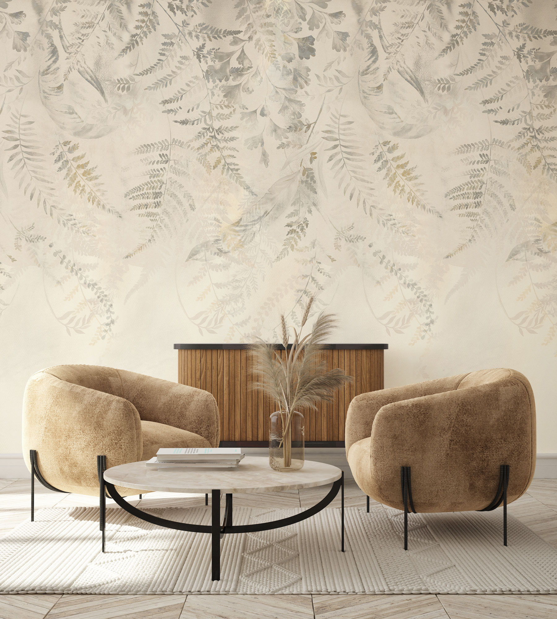 This delicate, boho-style photomural evokes a sense of cosiness and gentleness for the observer, with the interplay of pale and powerful elements giving the motif its natural look.