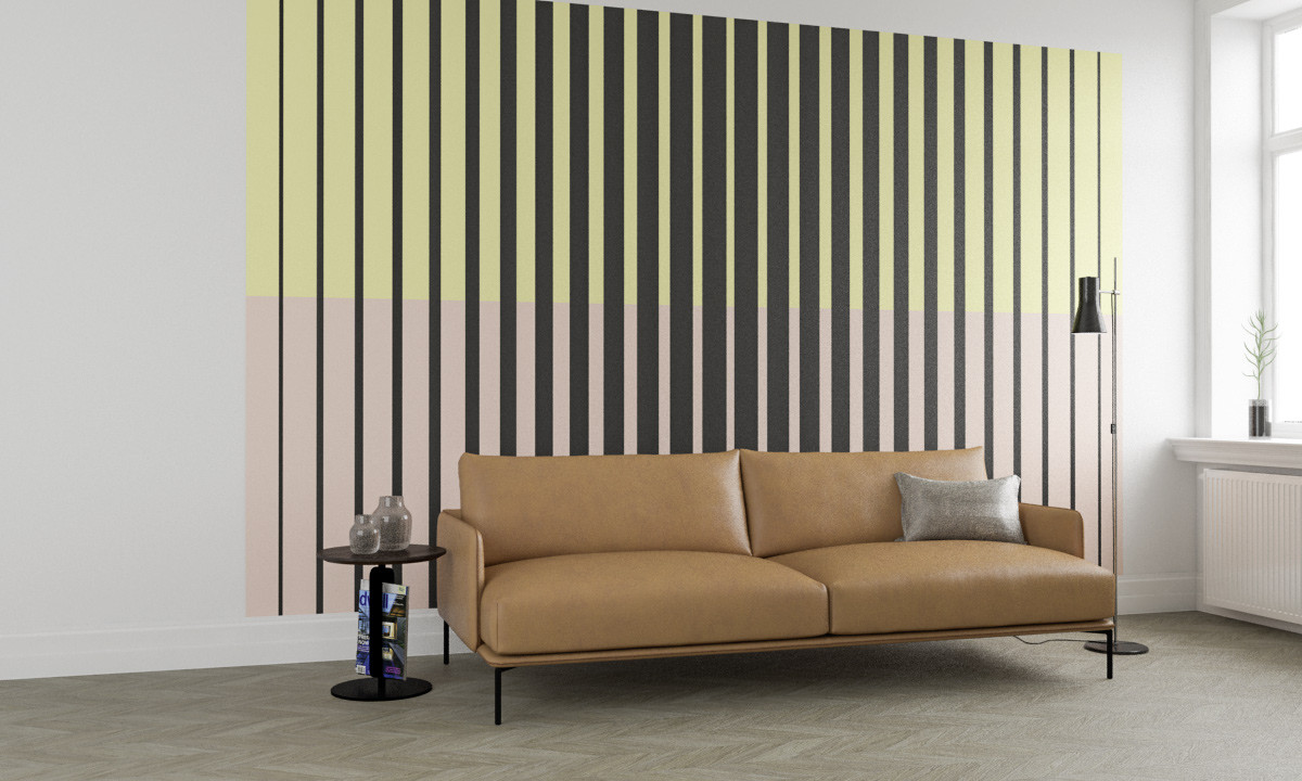 Lamello Mezzo black-yellow-apricot: Horizont mit Ausstrahlung in gelb, rosa, schwarz.