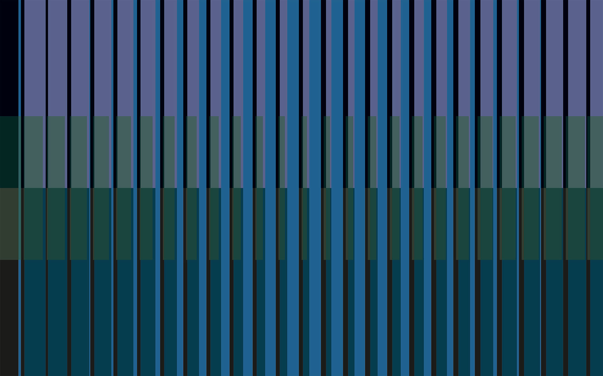 Lamello Quattro blue-green-blue: Horizont mit Ausstrahlung in blau, grün, schwarz.