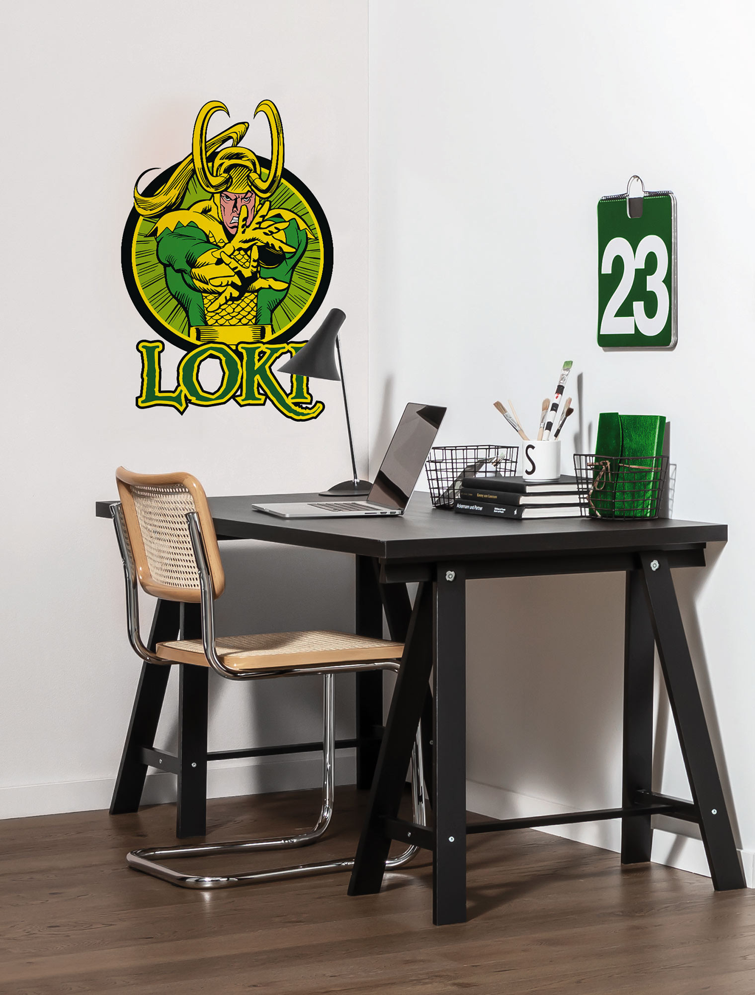 This cool deco sticker featuring Loki only hints at what a villain he can be. Even though he is known as a troublemaker and constantly tried to trick the Gods of Asgard, he always had the backing of his adoptive father Odin. He is and remains a master of manipulation.
