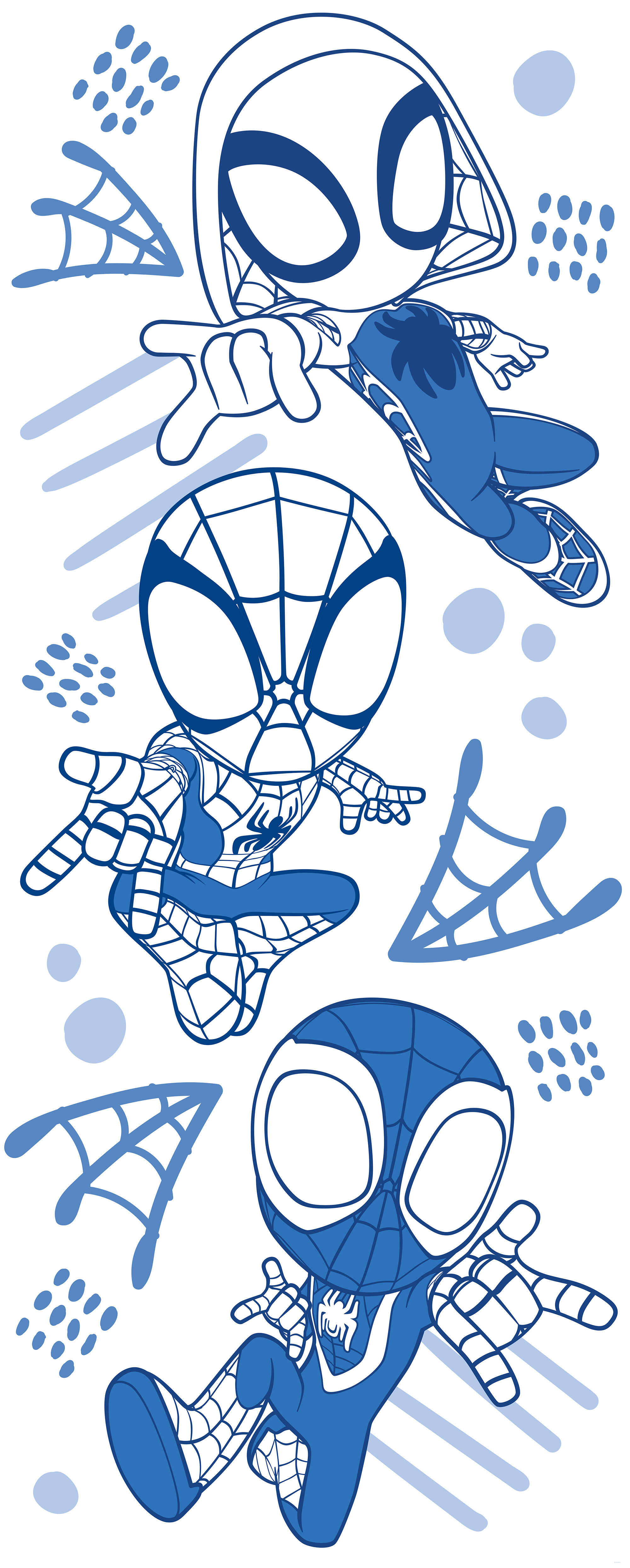 Spidey and his friends go blue. The wallpaper shows the friends from the popular animated series in a stylish design and transforms boys' and girls' rooms into a cool place full of adventure. Young Marvel fans in particular will be thrilled and can now admire their hero in large format at home.