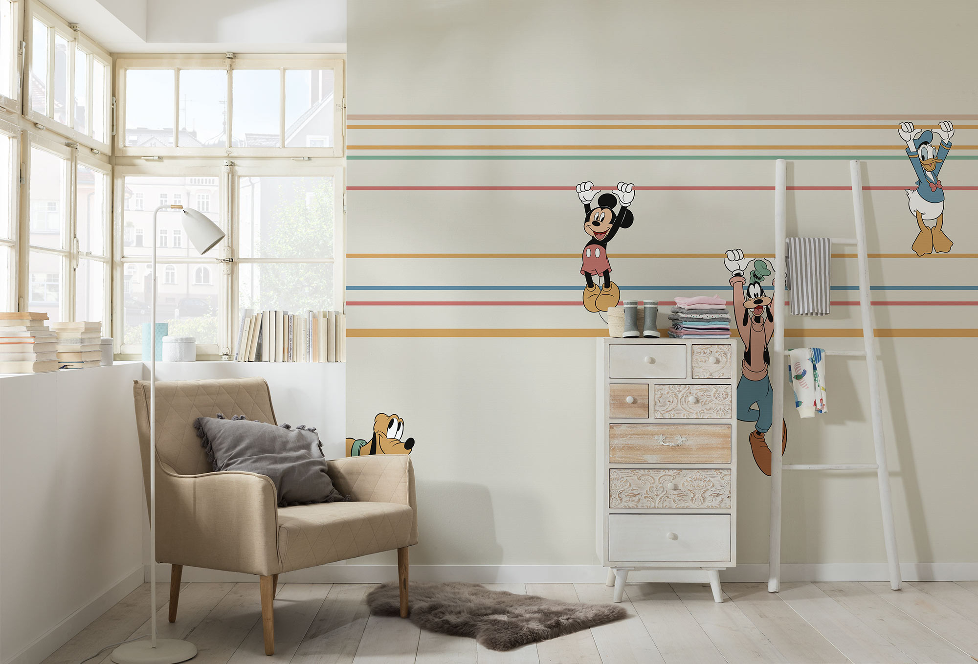Mickey and pals always bring the fun. Their joy and energy delight young and old alike and can now be transferred into your home on this photomural.