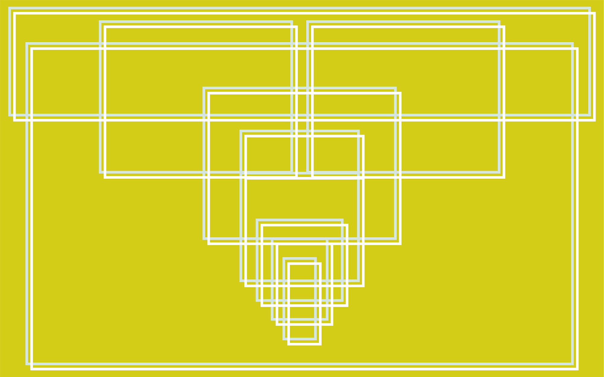 Mills Board Center icegrey-yellow: Achsensymmetrisches Riesenornament in schwarz, weiss.