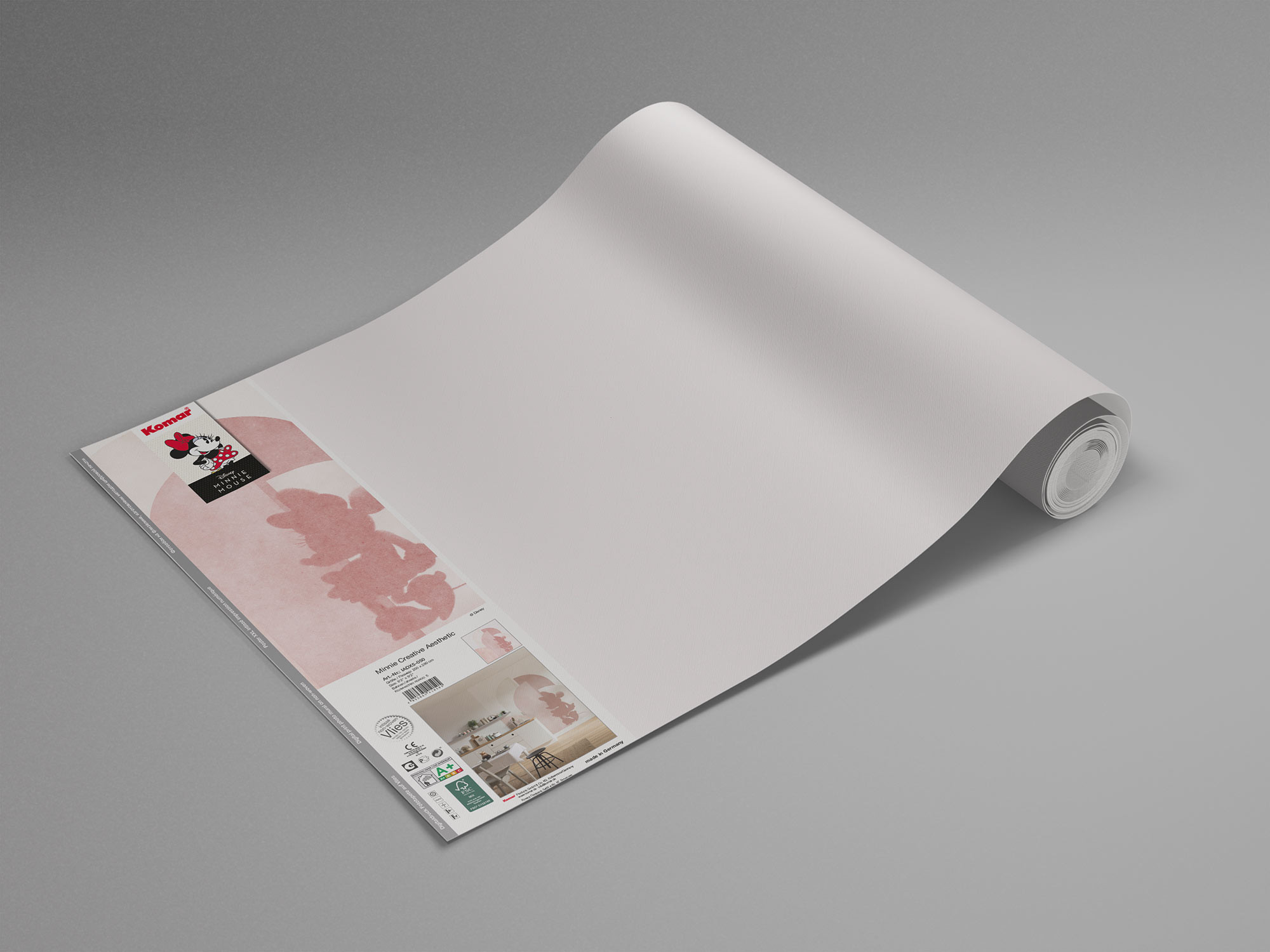 Minnie Mouse peeps out cheekily and creates a feminine flair in the nursery on this beautiful design wallpaper.