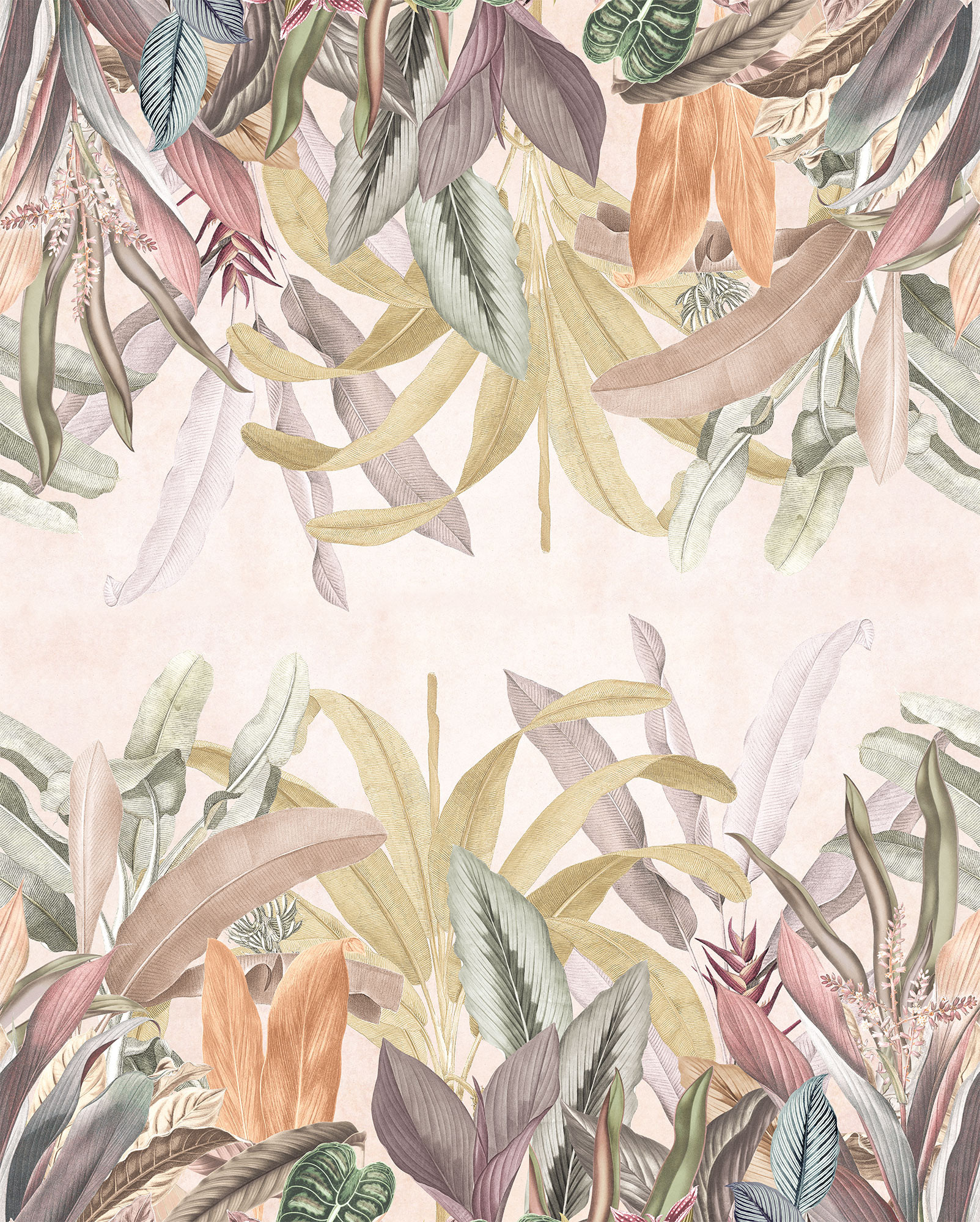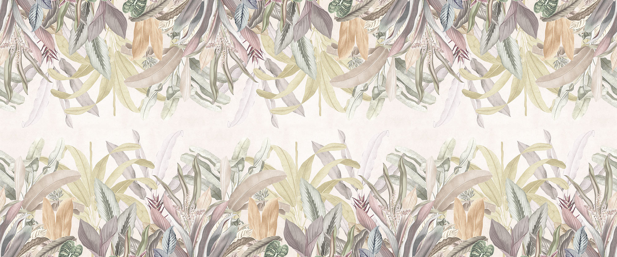 The magnificent leaf print conveys liveliness and exoticism. The filigree plants loll up on the wallpaper and show themselves from their most beautiful side.