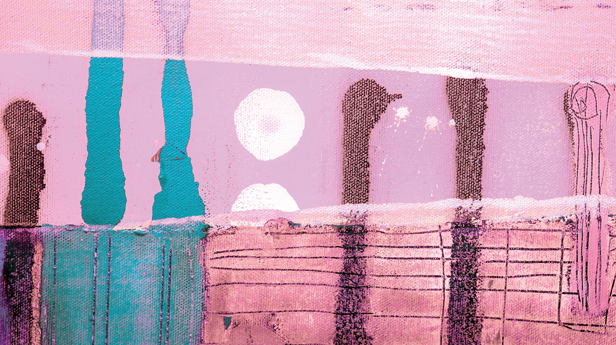 Moon Shining: Mondaufgang in einem geheimnisvoller Säulengarten inrosa, braun.