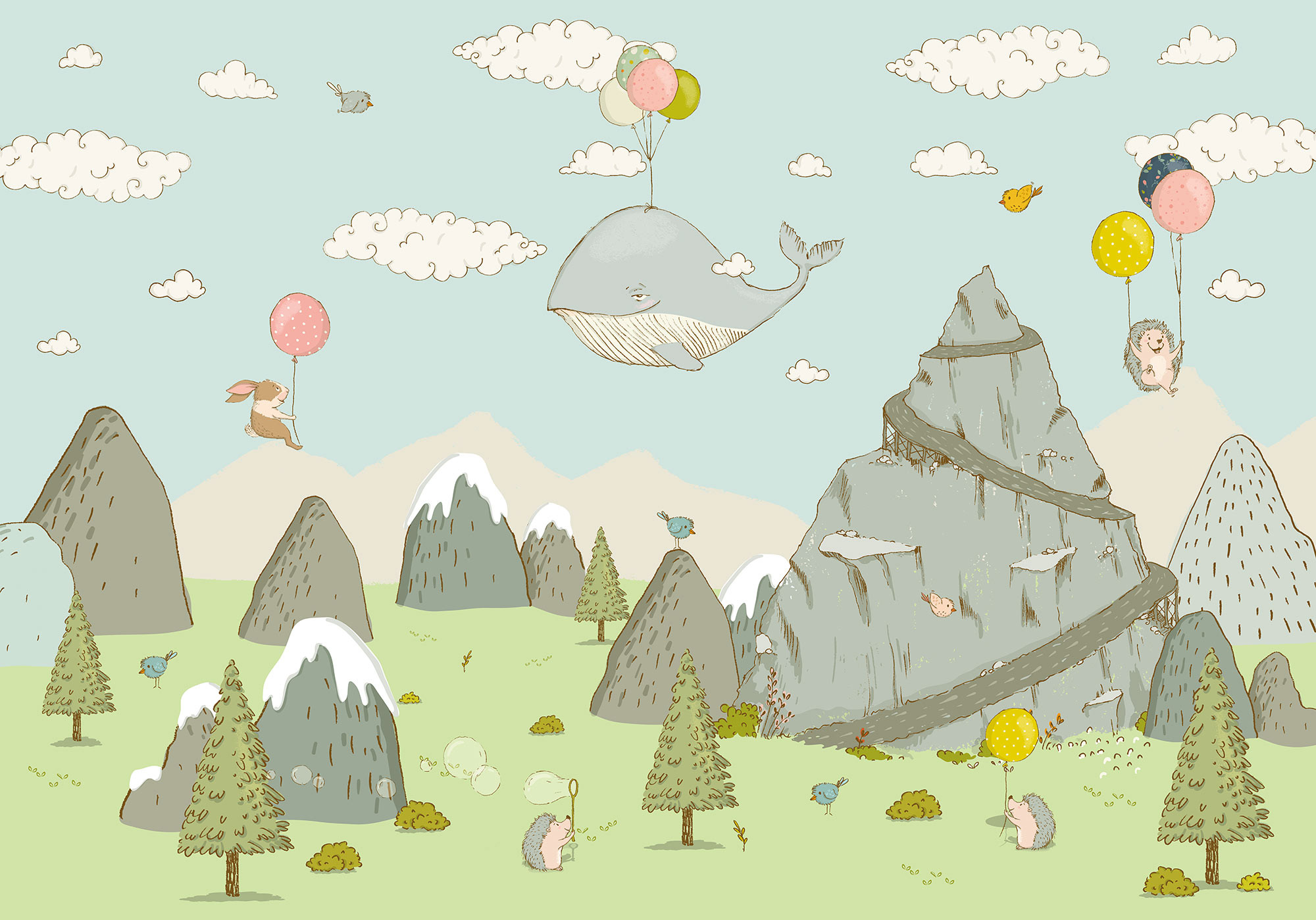 Balloons, soap bubbles and cute animals cavort on this magical wallpaper and invite you to dream and fantasize!