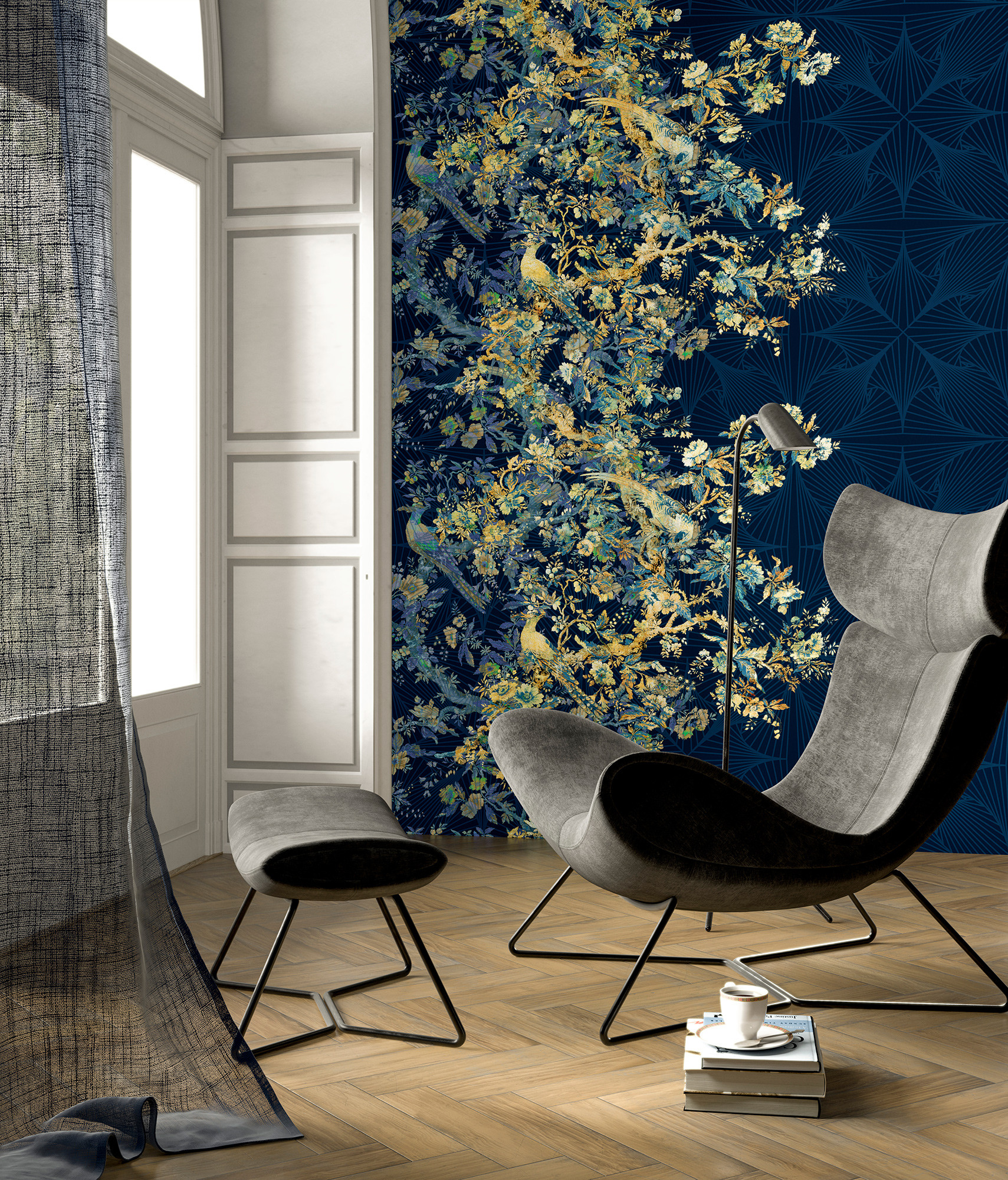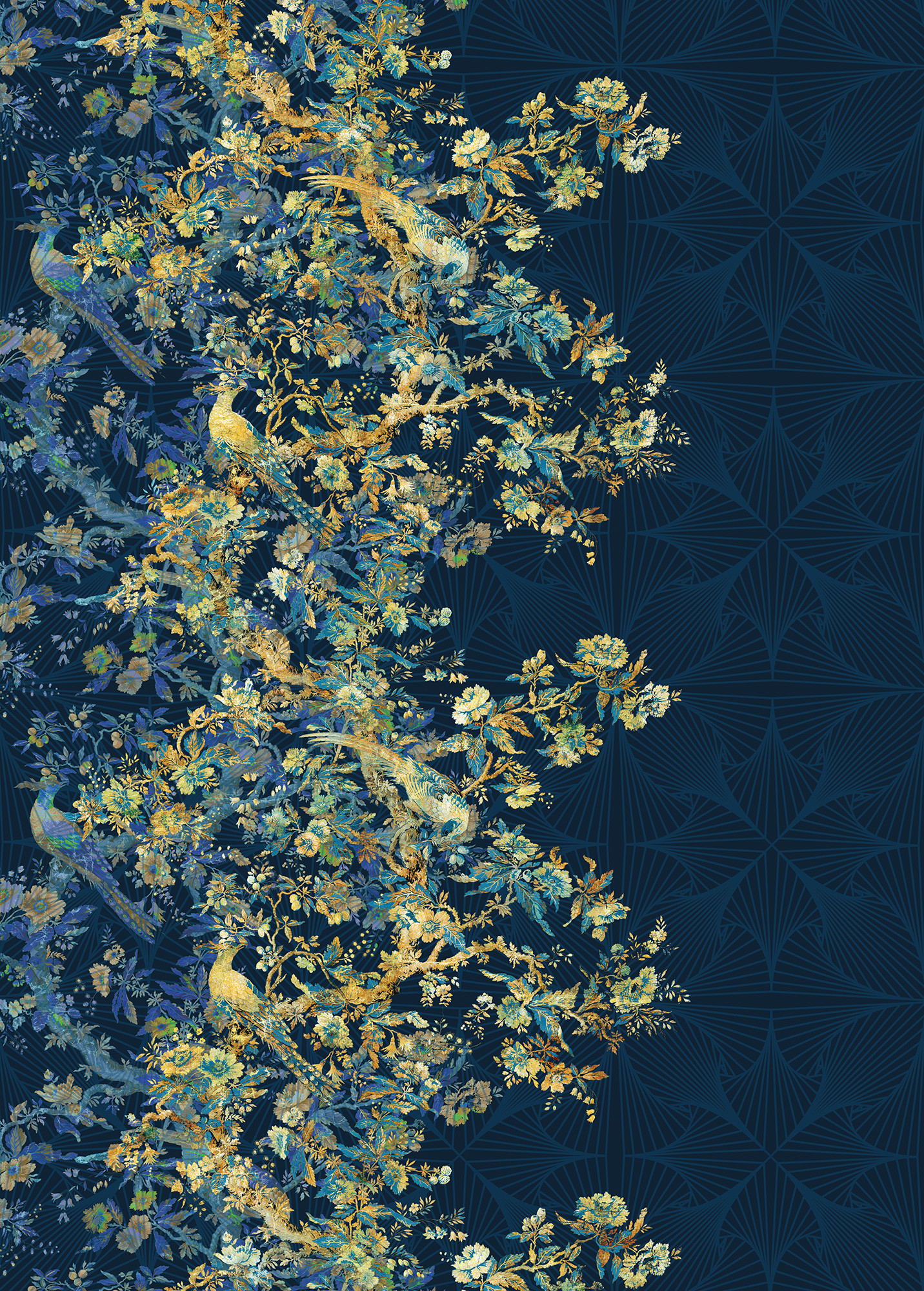 In this dream world, birds of paradise perch on intricate branches.