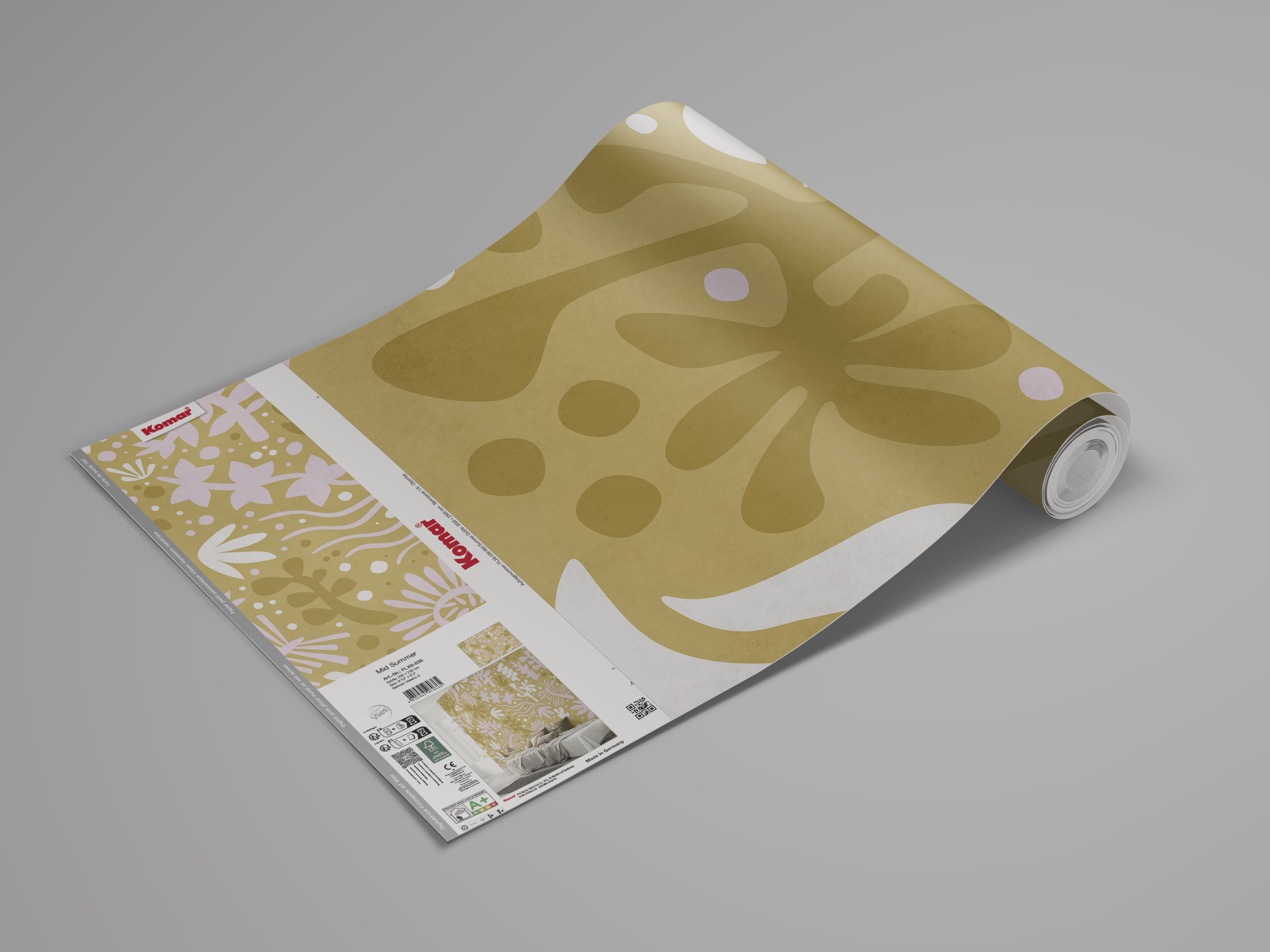 The vibrant pattern features a variety of shapes and plants and offers an endless source of discovery. The combination of the colour scheme and the different types of pattern makes the photomural an individual decoration for the wall and creates an exciting ambience.