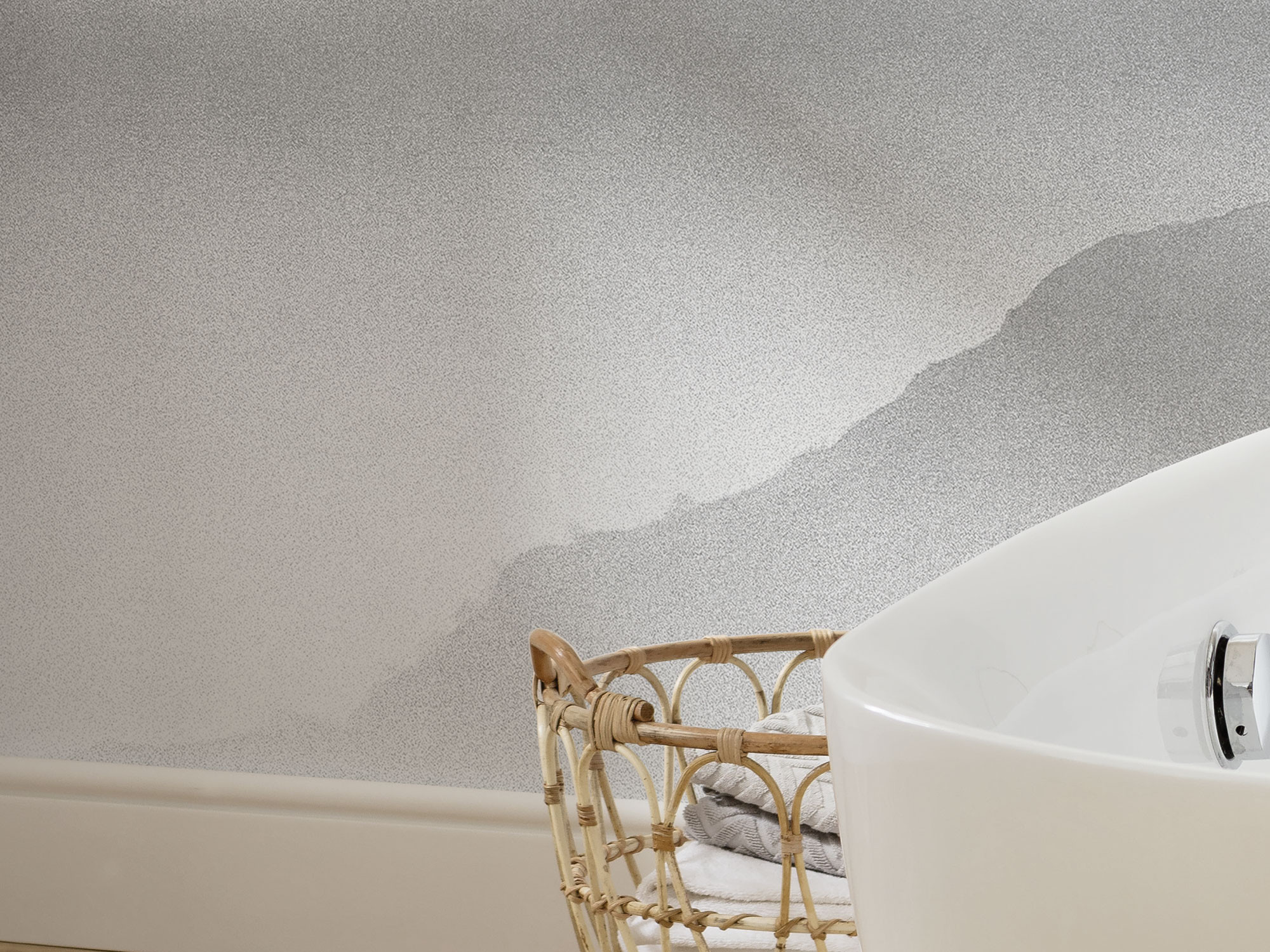A view of a valley through dense fog makes for a wonderful photomural motif.