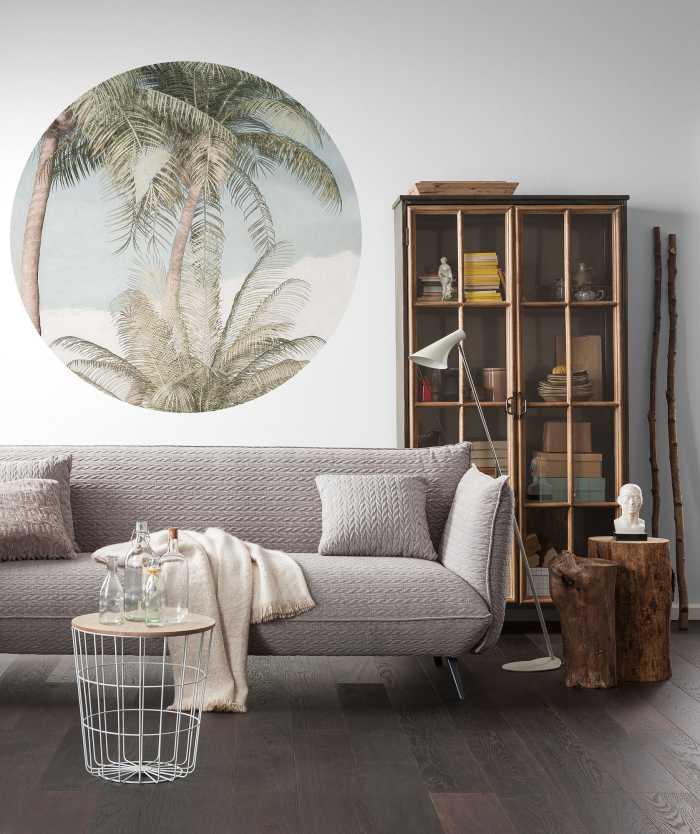 A different take on the South Sea feeling! Palm trees in reduced colours make a subtle yet powerful statement.