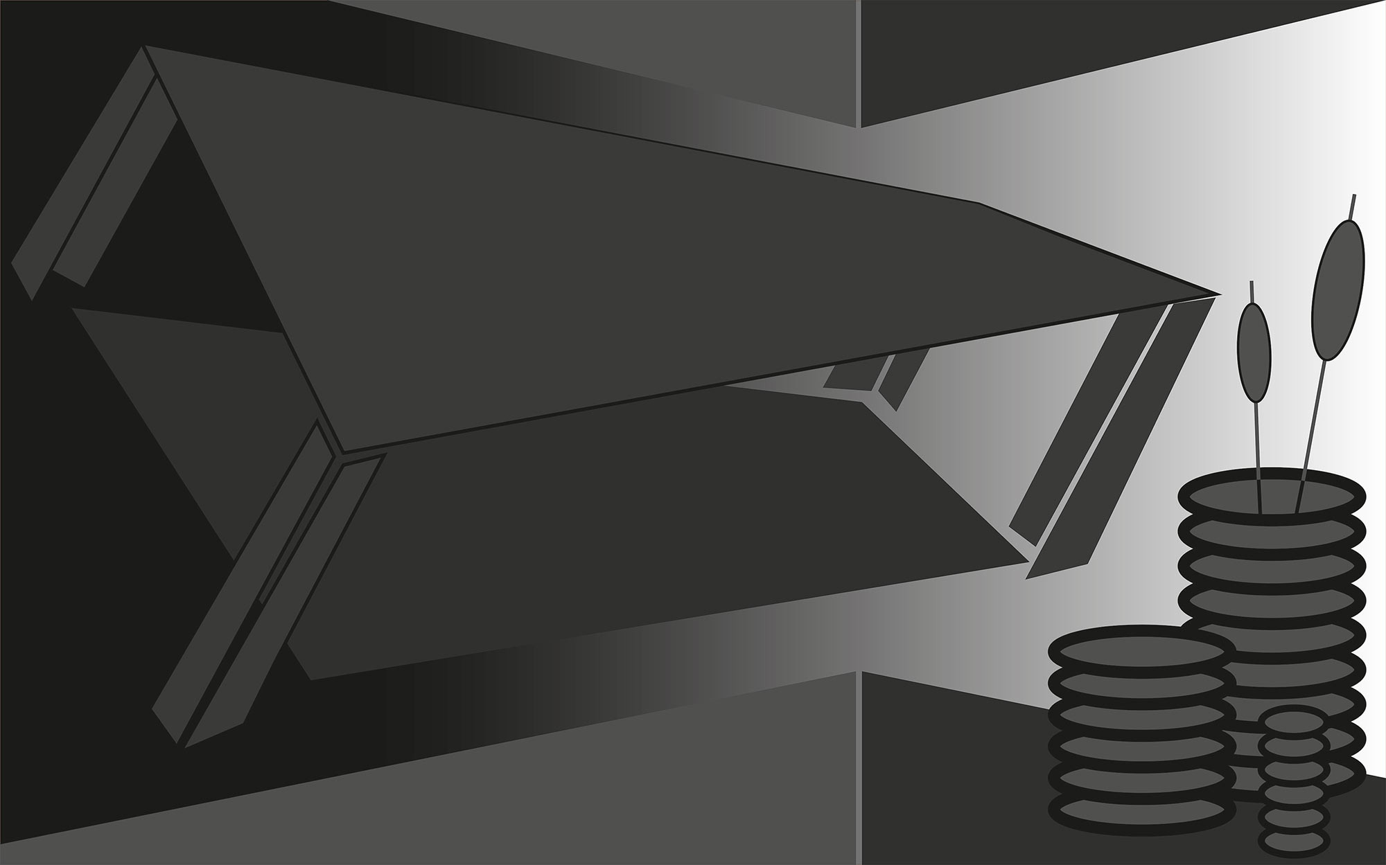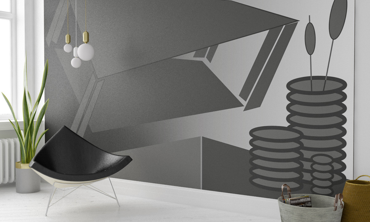 Perspective Table black-grey-grey: Raumillusion in schwarz, grau.
