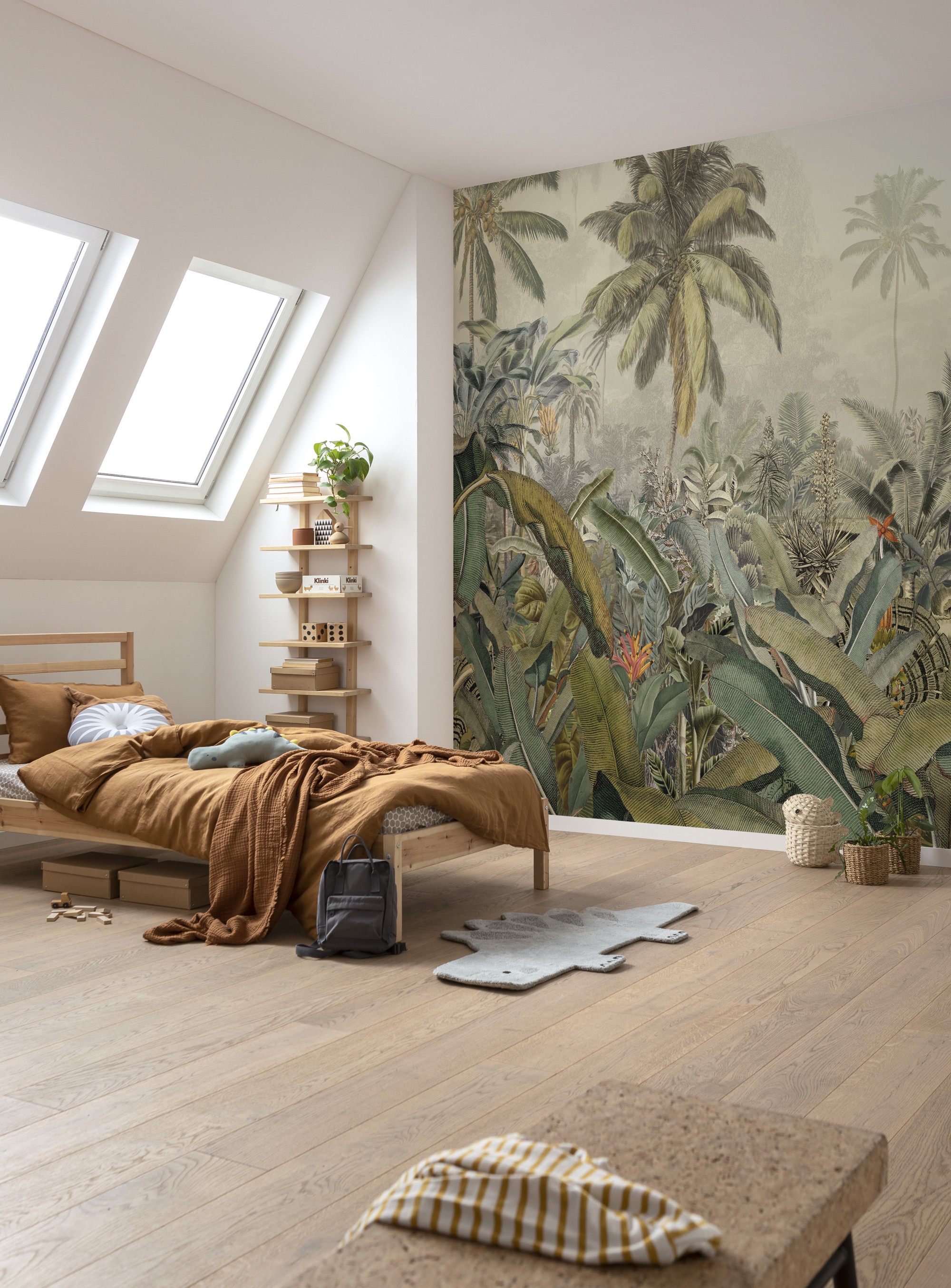 Explore the jungle – The dense green rainforest is home to numerous species of animal and plant. As a photomural, the detailed jungle motif is the ultimate eye-catcher for your home.