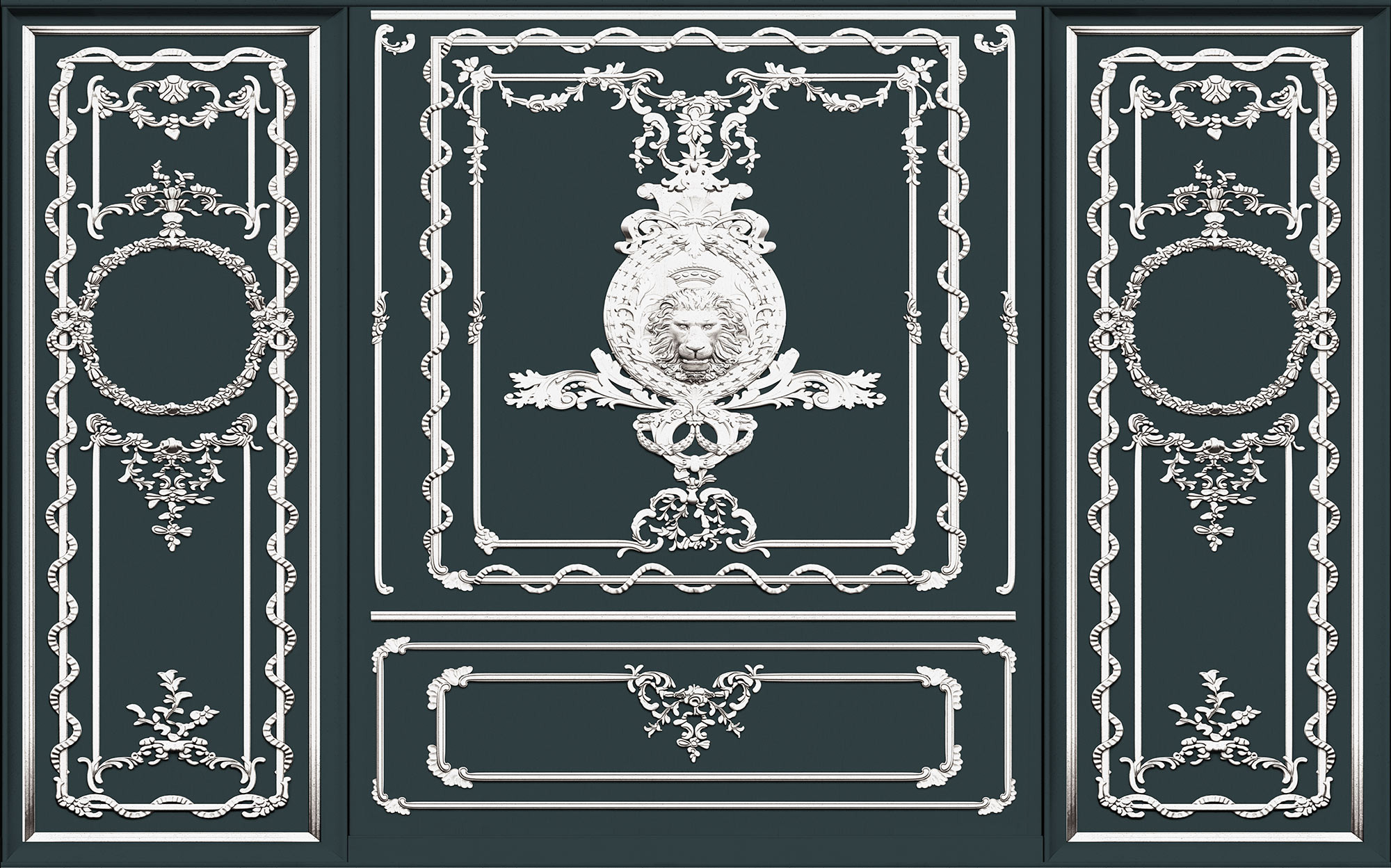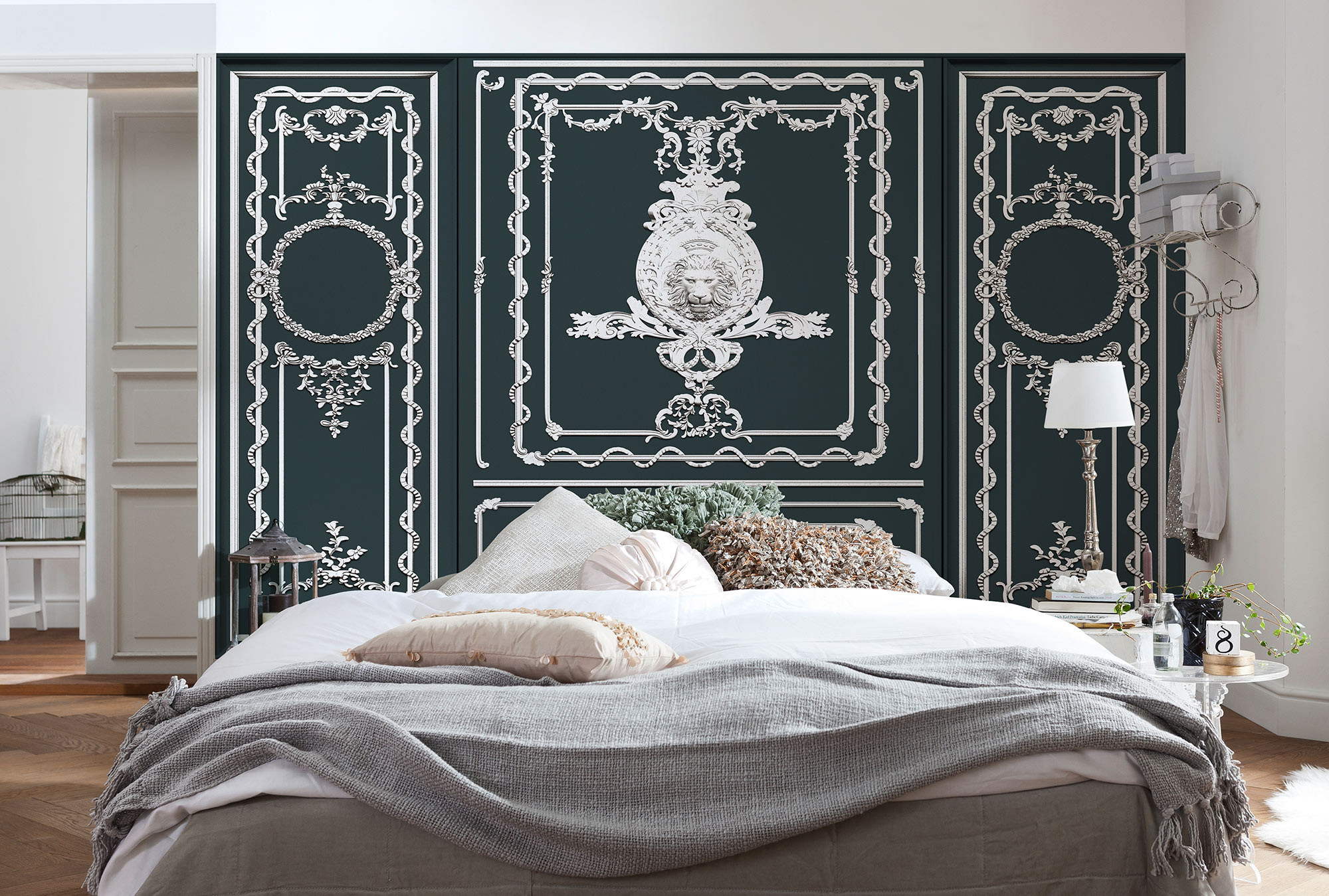 The dark grey in combination with golden elements gives the mural both an opulent and a stylish look. It certainly makes an extravagant statement in the home.