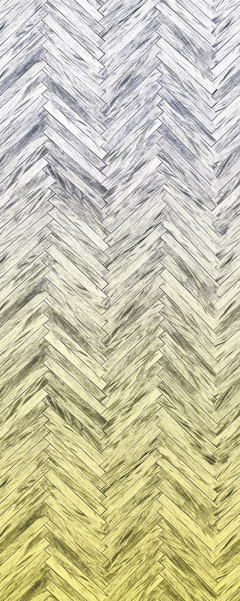 A new look for old wood: fishbone parquet with a modern progression of colour in yellow.