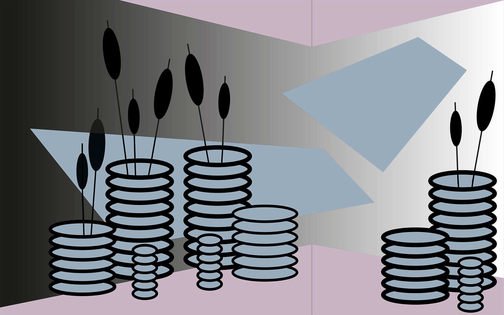 Perspektive Carpets rose-bleu-black: Raumillusion in grün, blau, grau, schwarz.