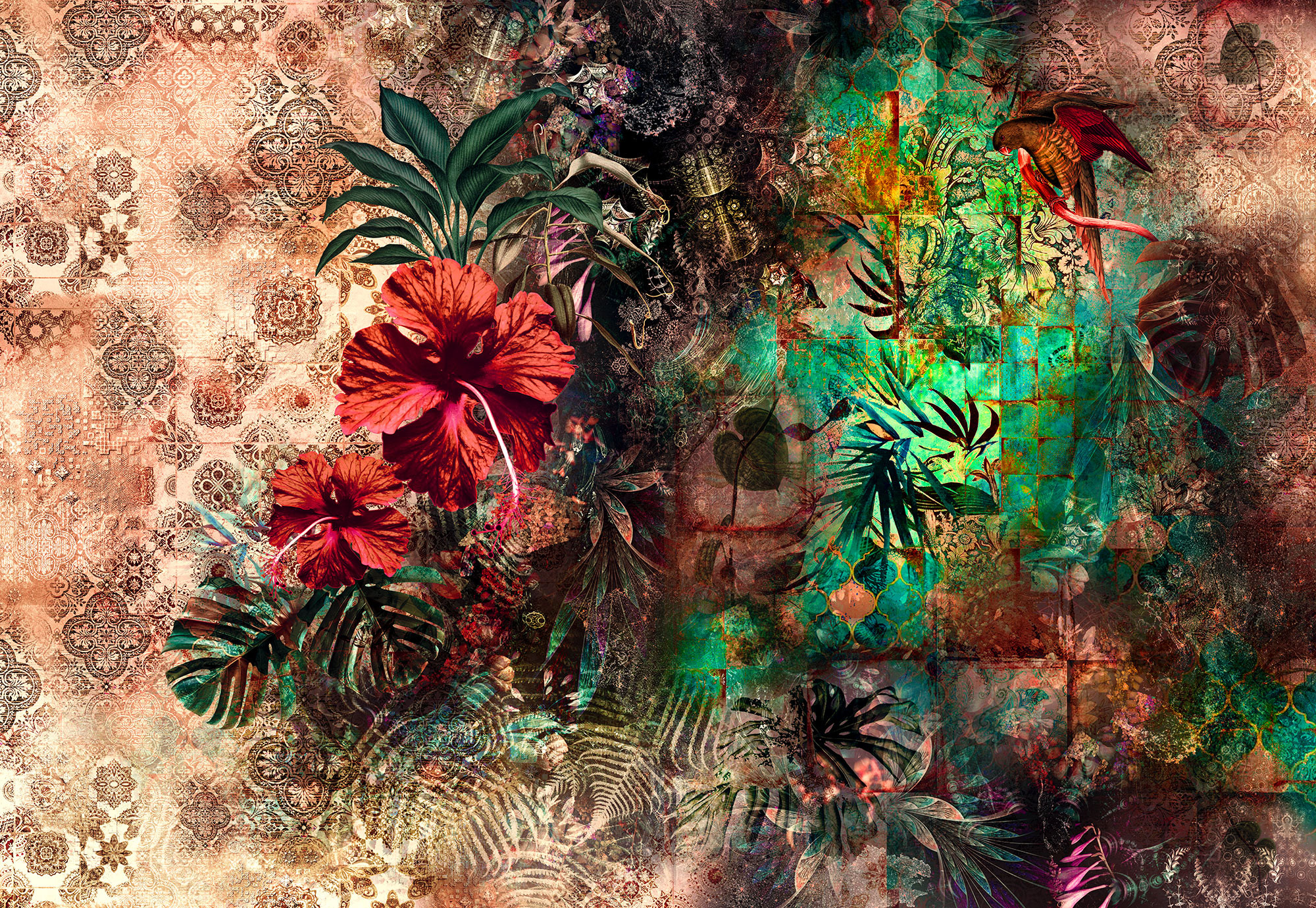 The flora and fauna of the Caribbean combined with tropical patterns create a stunning collage for walls.