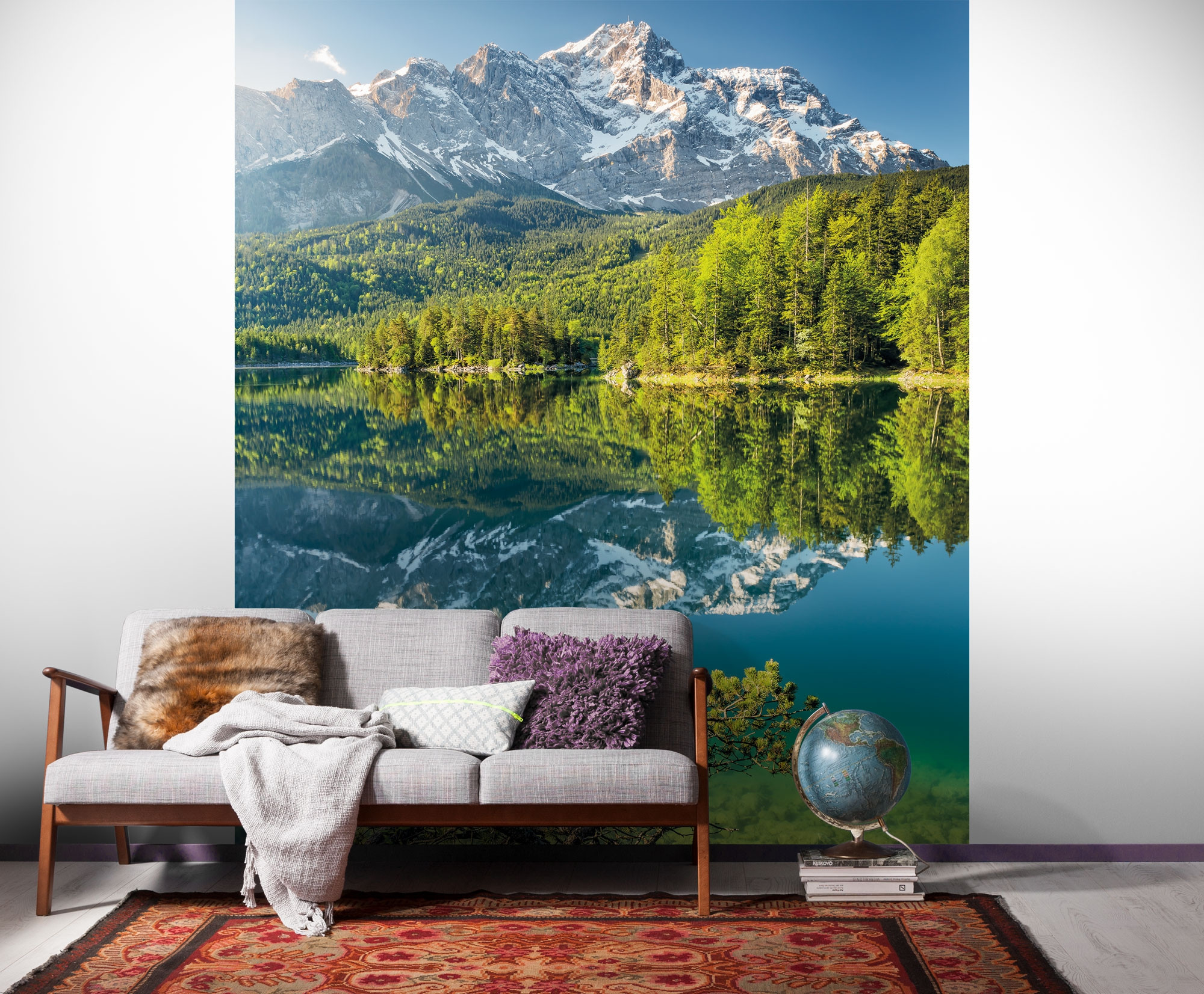The mountain “Zugspitze” rises 2962 meters above the crystal clear Eibsee lake in southern Bavaria.