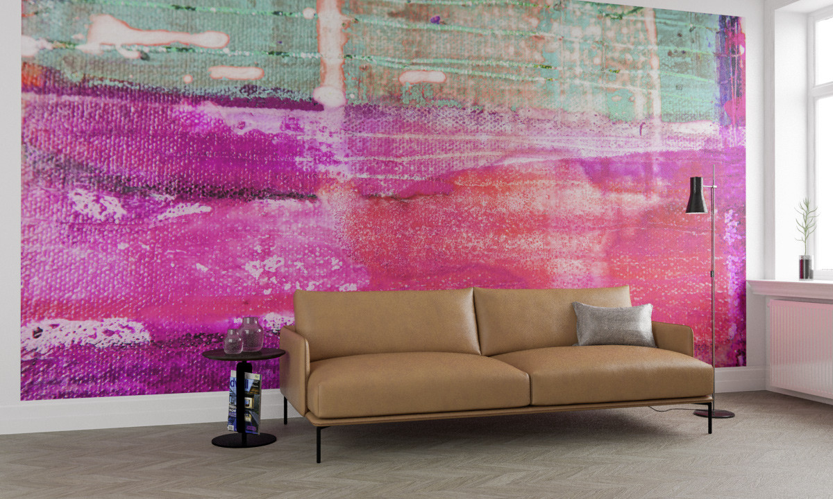 Puddle Tangy: Flimmernd verschmelzen Farbflächen zu einer Landschaft in rot, pink.