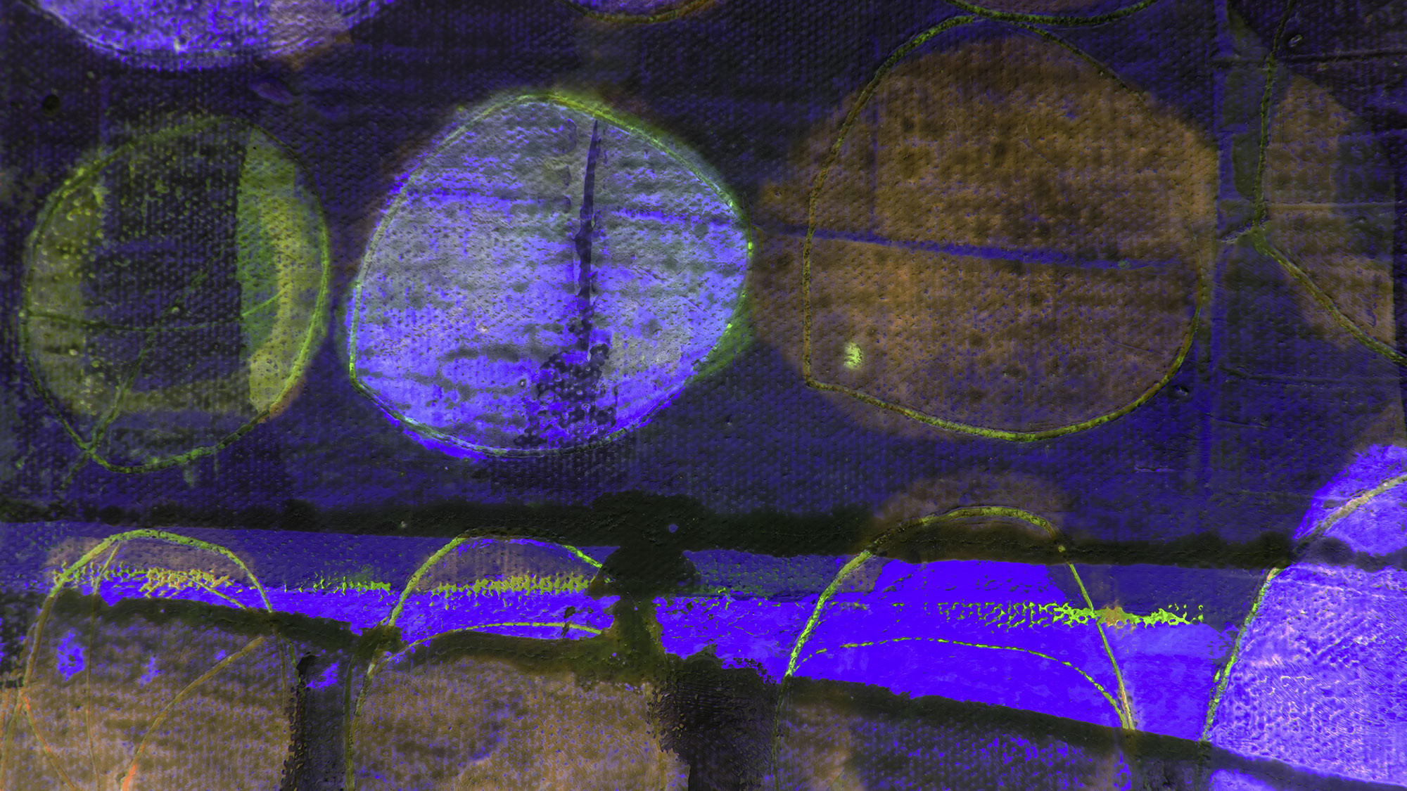 Rolls Rolling: Runde Formen bewegen sich auf malerischen Flächen in blau, braun.