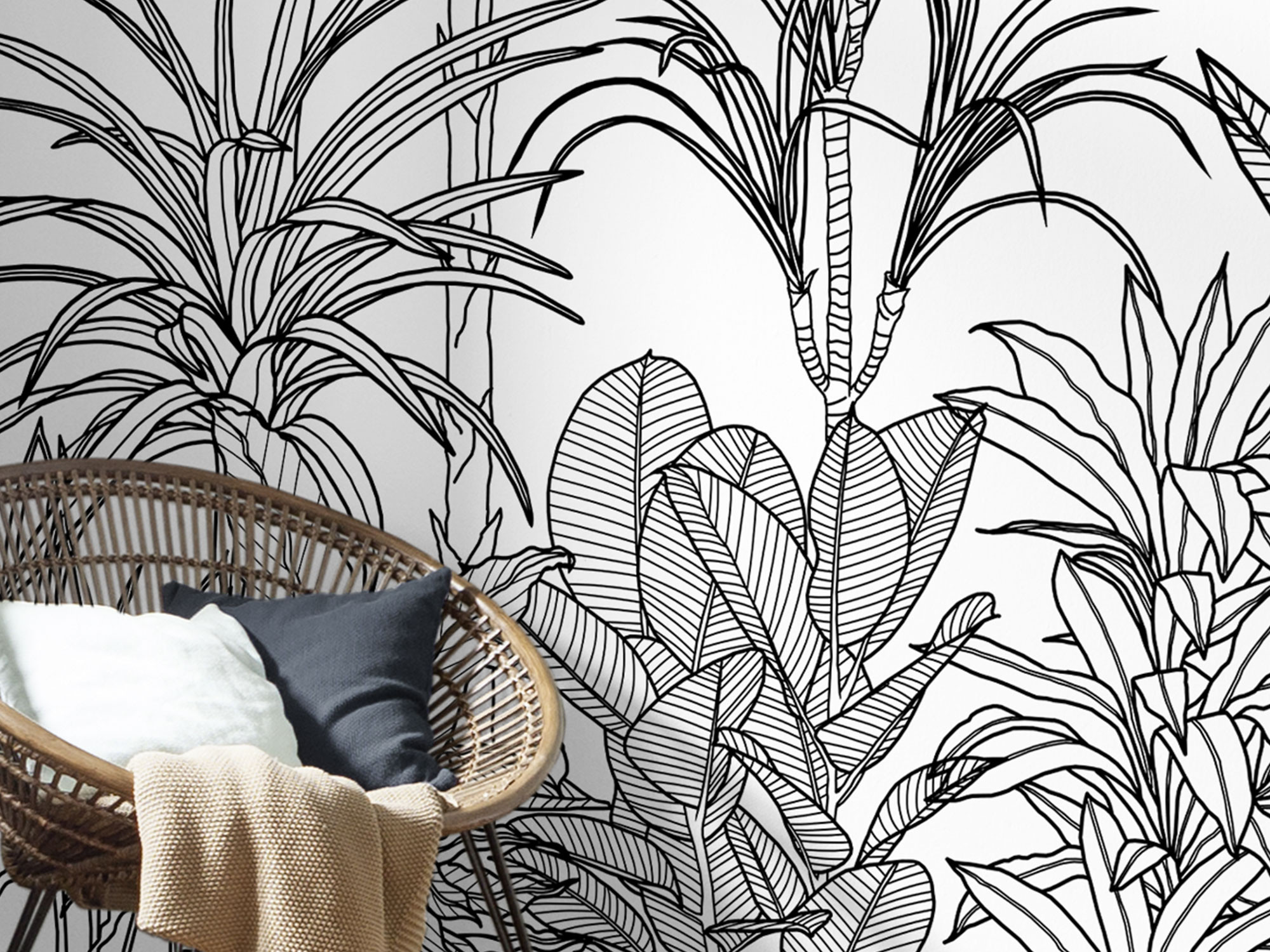 This plant motif produces a wonderful wall design – the delicately drawn leaves are not overbearing and can be combined beautifully with any piece of furniture. Thanks to the black-and-white colour scheme, you will never tire of this timeless photomural.