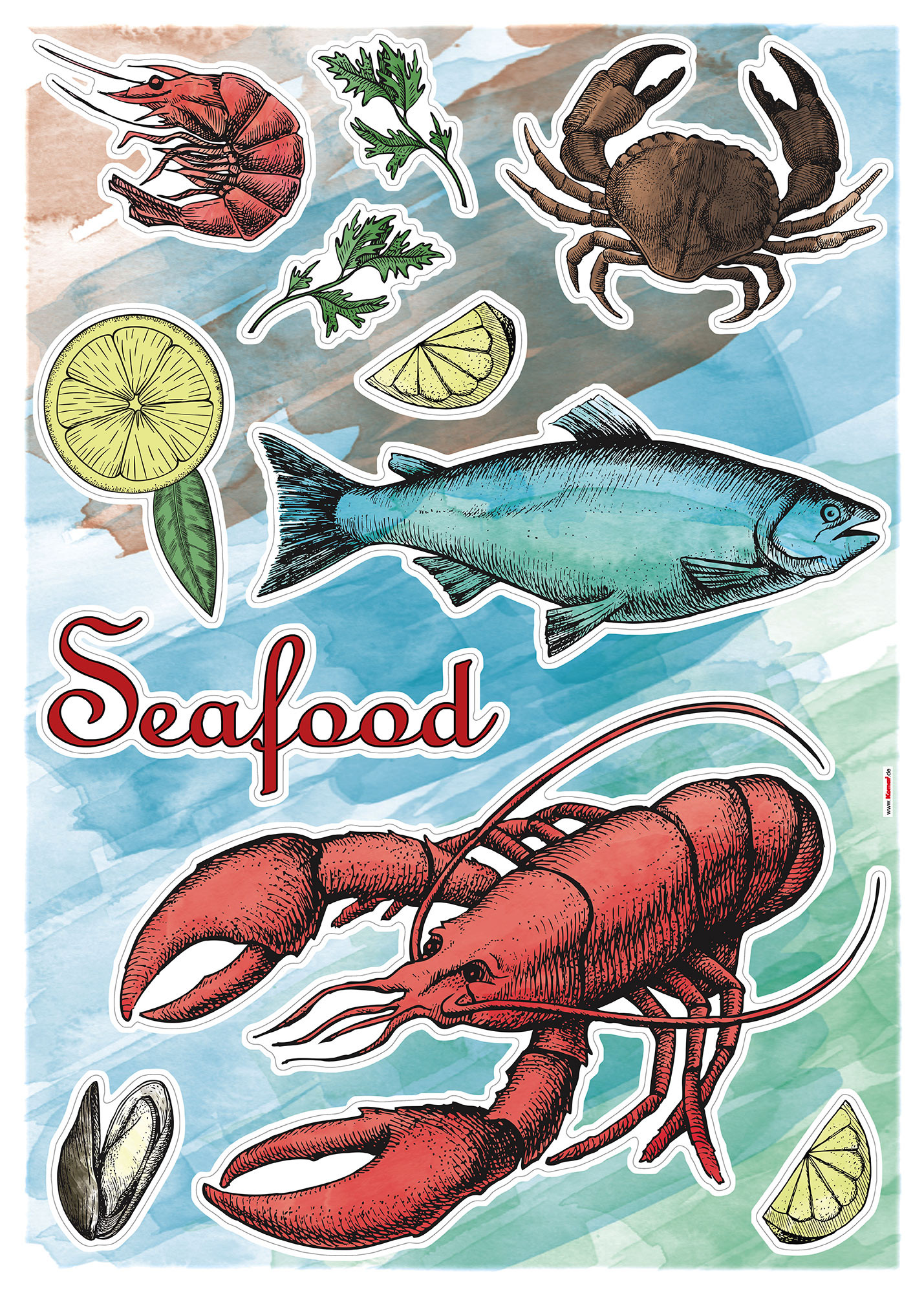 A perfect wall decoration for the kitchen: wall tattoos with seafood.
