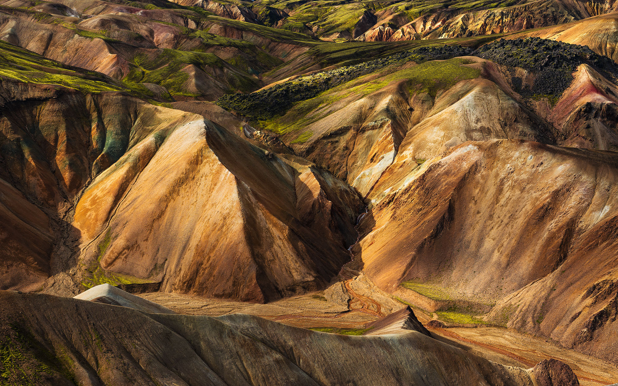 Looks like painted with brushes - the rocky landscape of Iceland looks like golden sunlight.