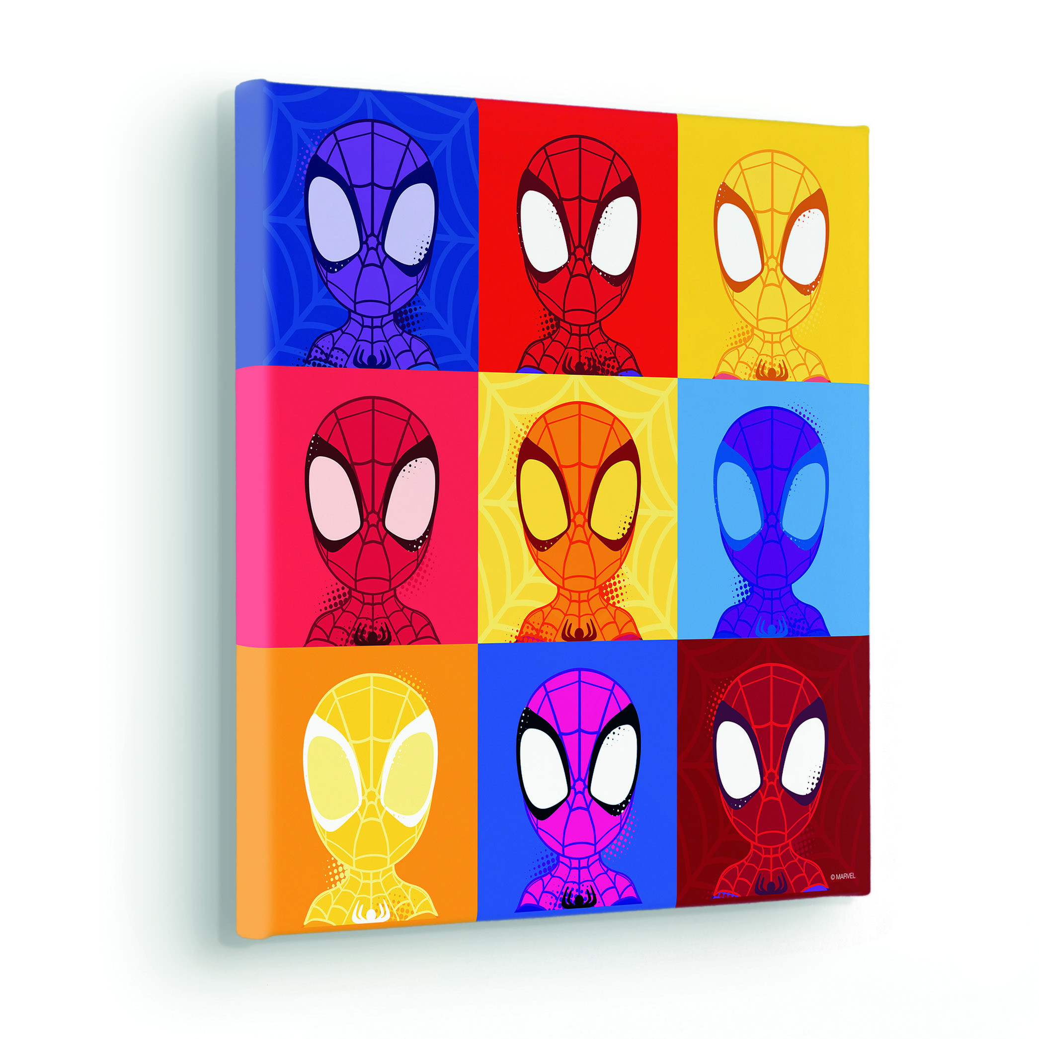 A collage of colourful Spideys! On this print, the children’s superhero will add interest and brighten up any space. This canvas print is perfect for children’s and teen bedrooms.