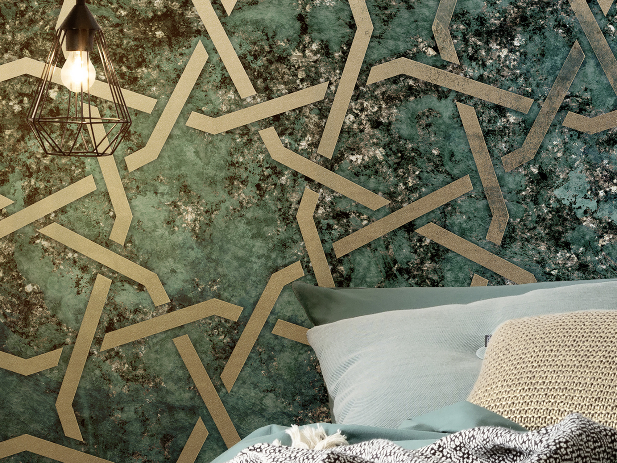 I see a star! This modern collage of geometric lines and muted colours appears almost like a starry sky on the wall.