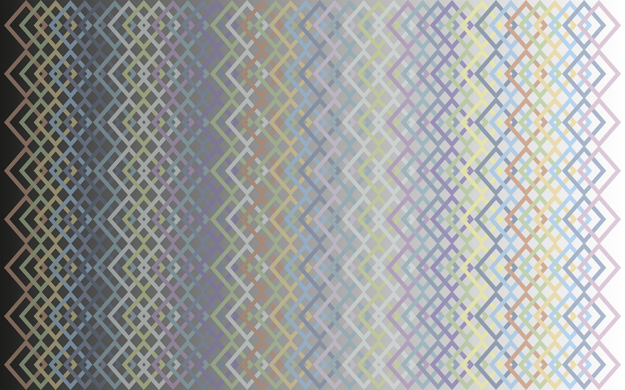 Structure Rhombus black-greywhite: Ein Farbrapport mit großer Dichte in schwarz, rot, blau, gelb, grün, rosa, lila.
