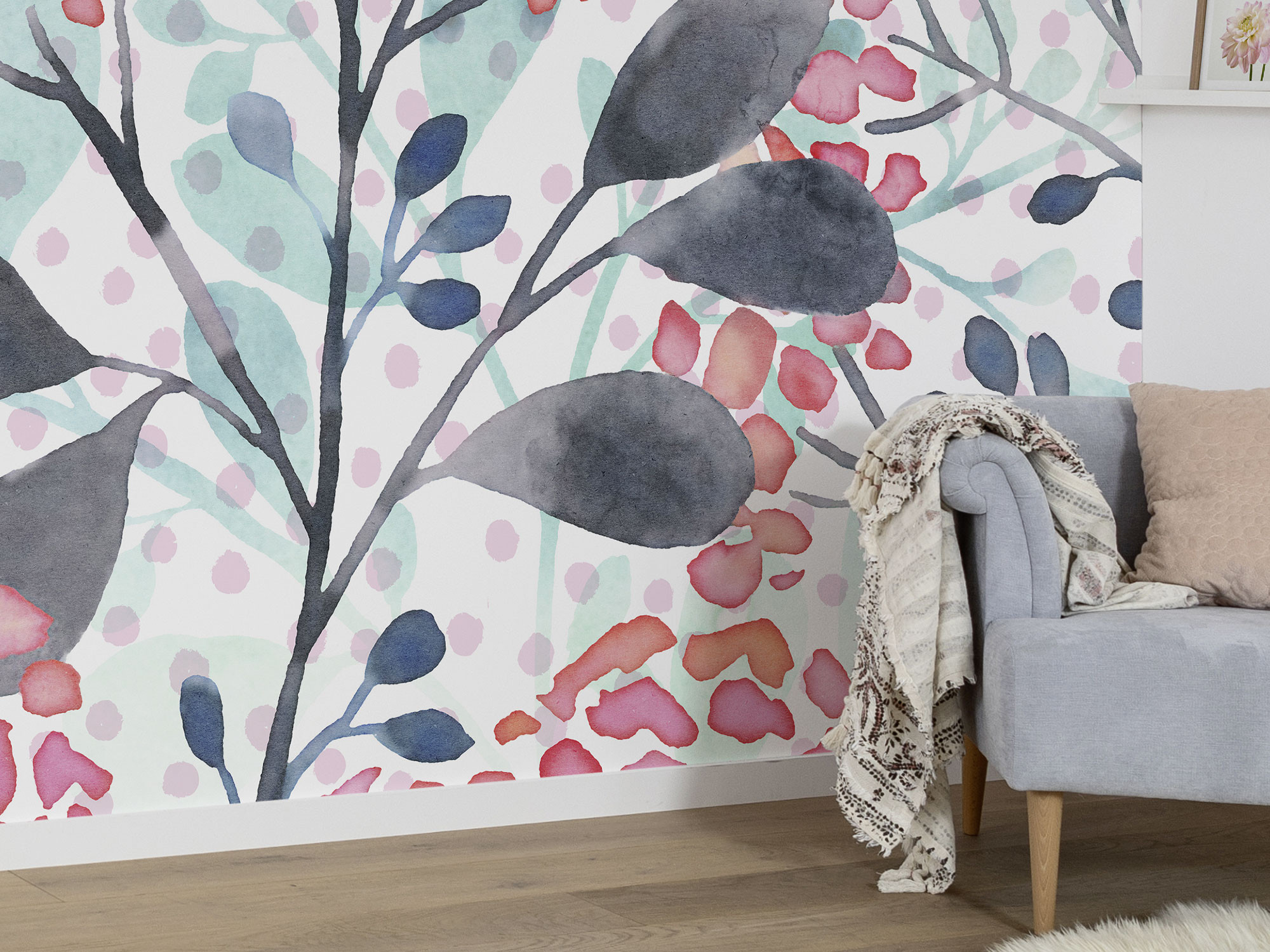 The watercolour-look mural transforms your home into a flower meadow, setting, colourful, yet subtle accents.