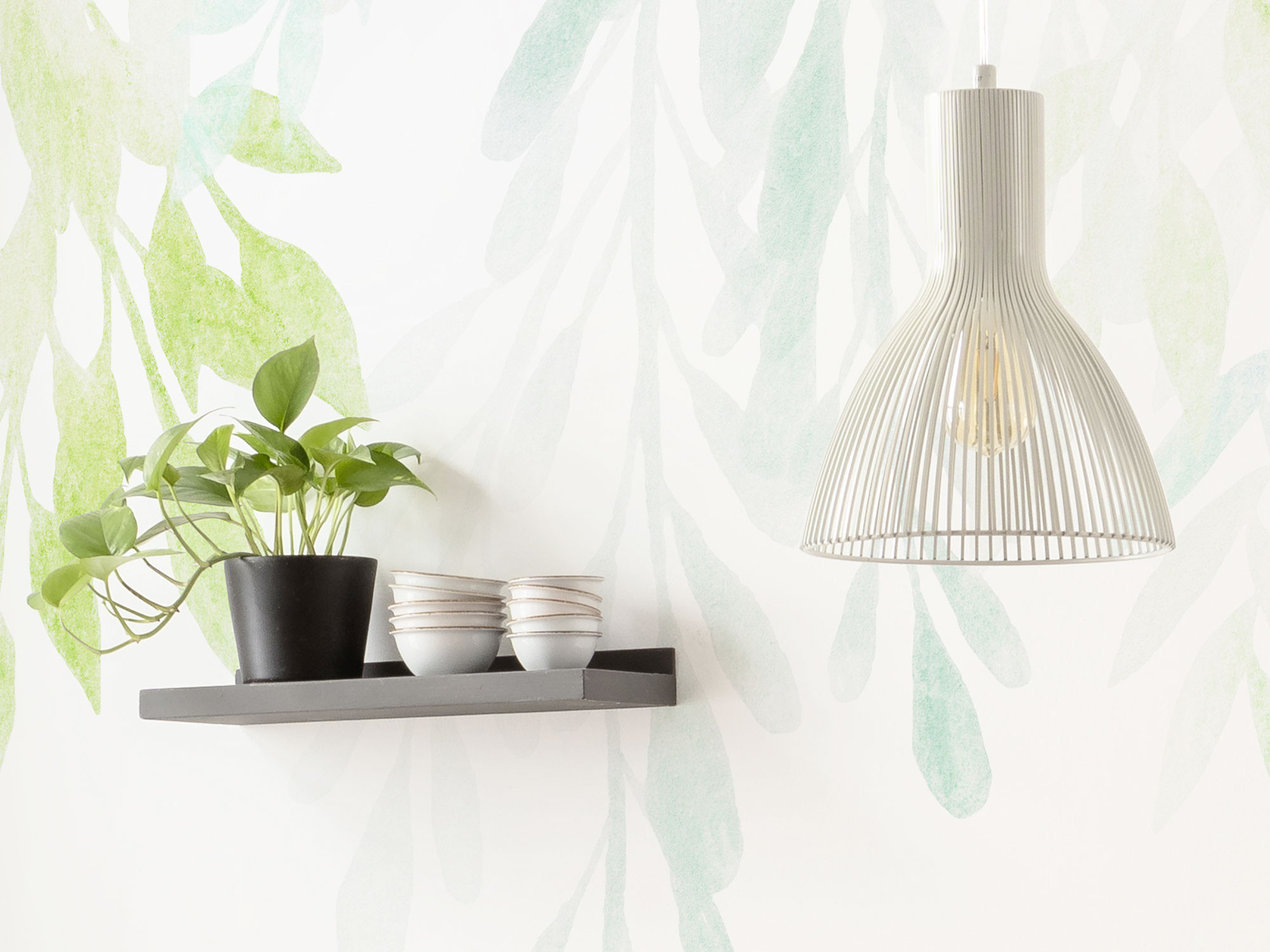 Decorating the upper edge of the mural, the delicate plants create an exciting look. This beautiful shade of mint creates a fresh and natural look in your home.