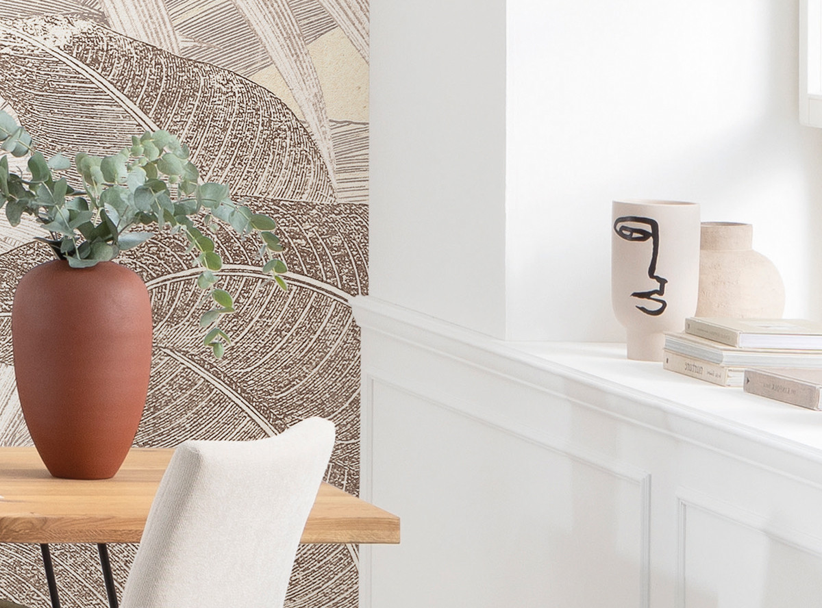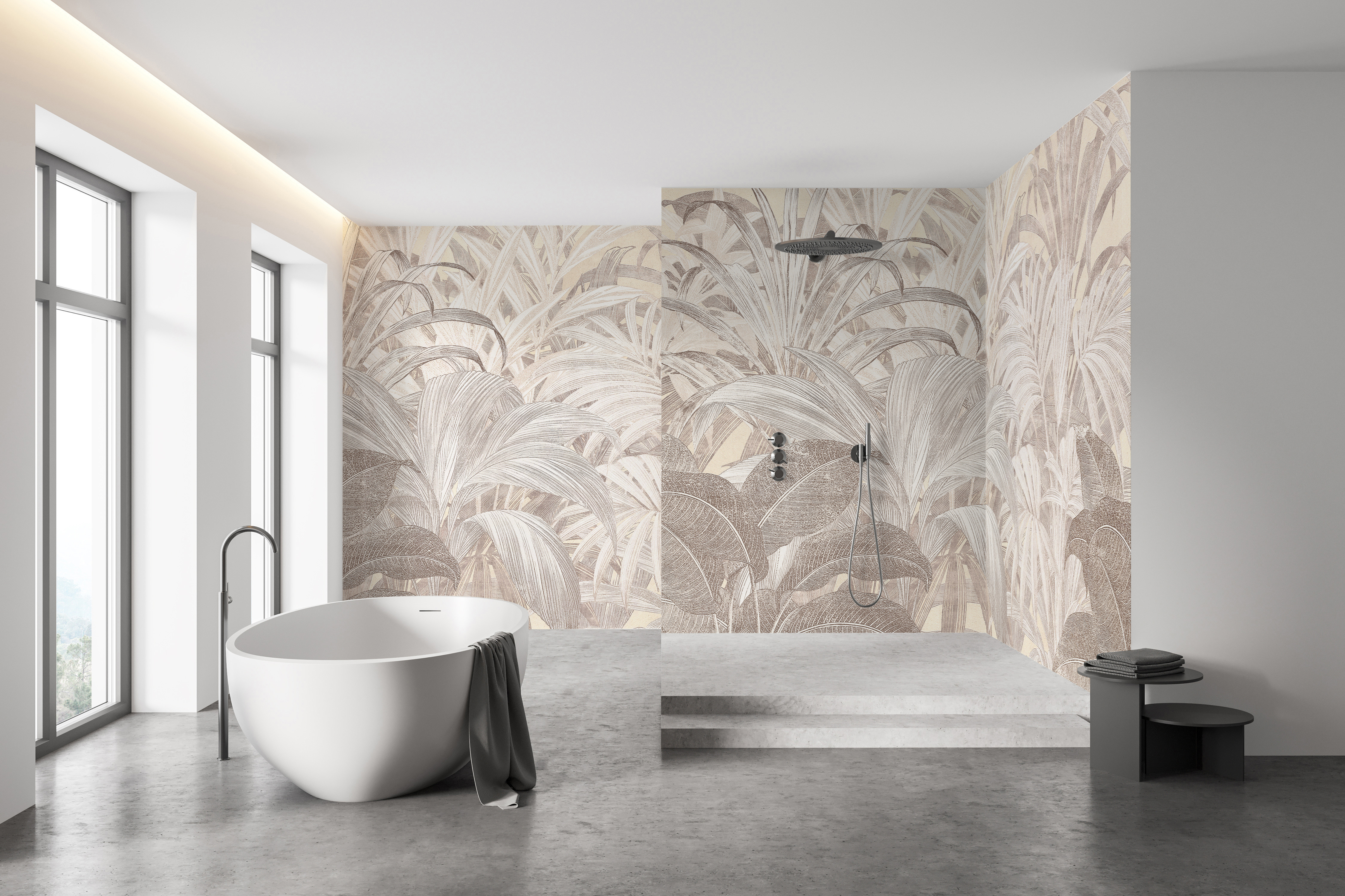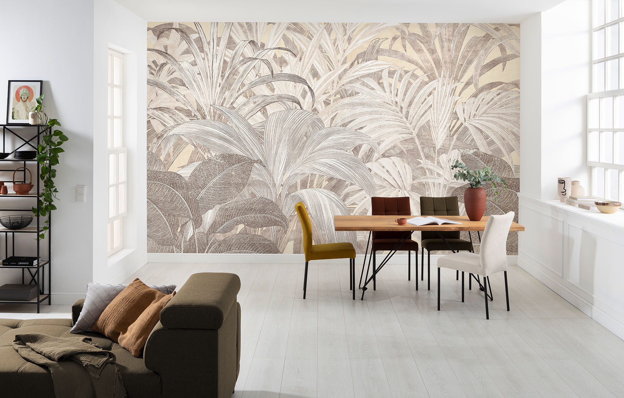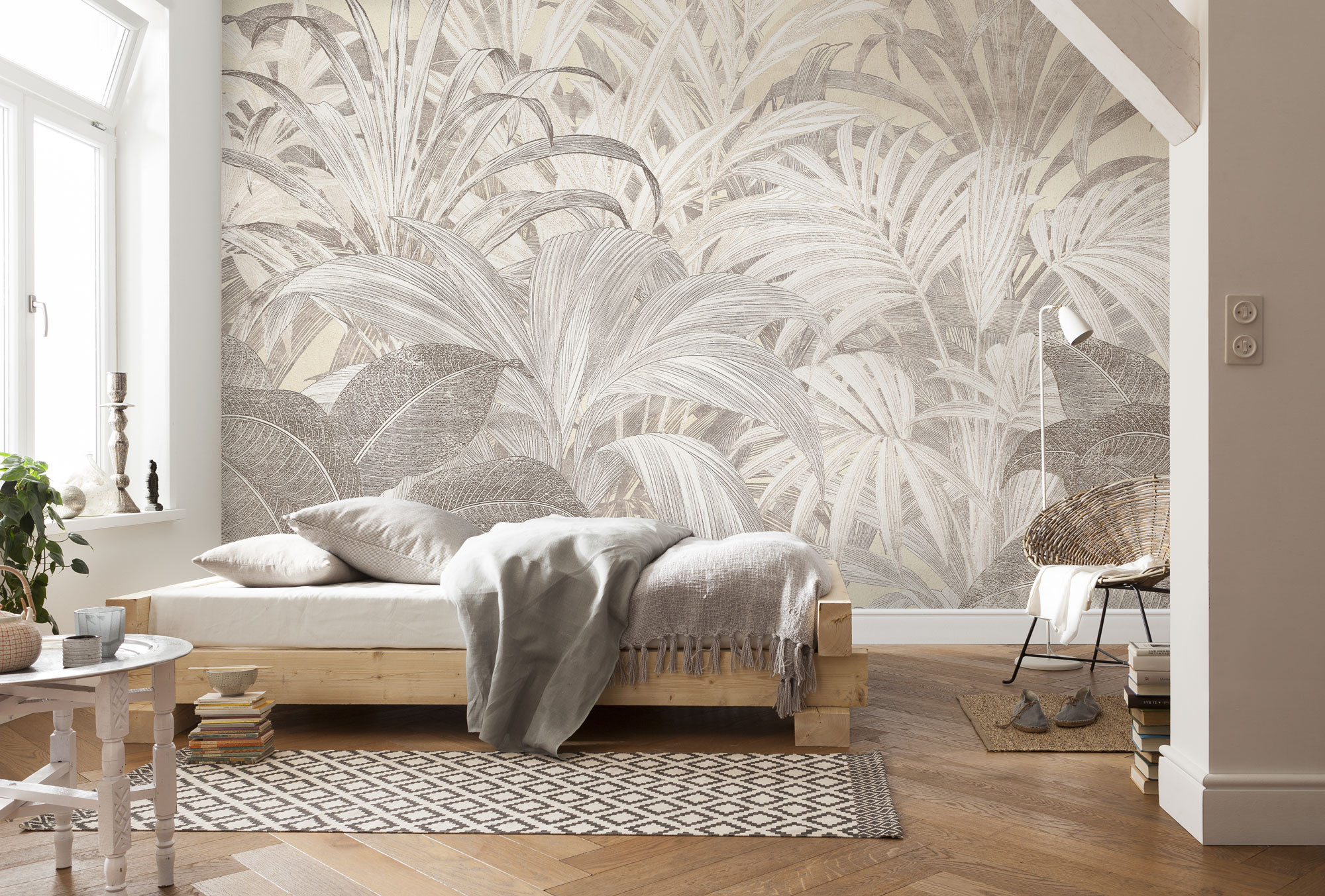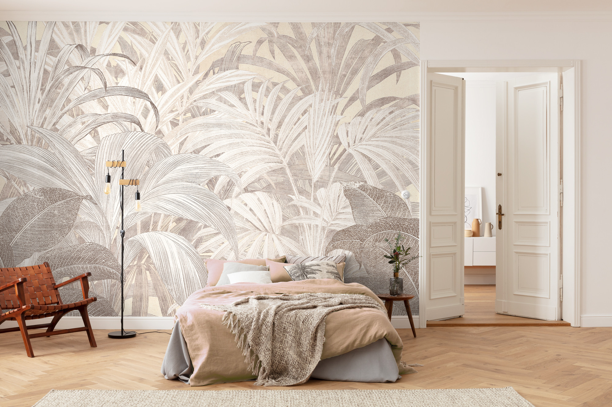 Jungle plants in their restrained form. Particularly minimalist and modern, this Photomural in light, natural tones blends into the living space.