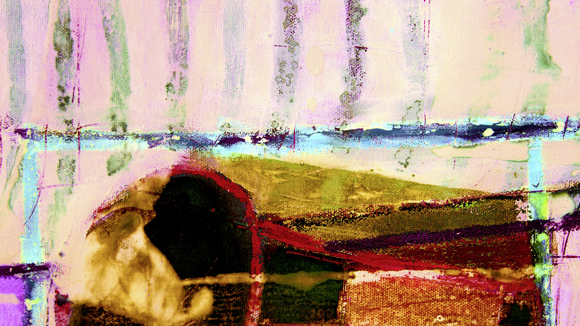 Table Tilting: Aus üppigen Farben, Formen und Streifen entspringt ein gigantisches Stillleben in rosa, orange.