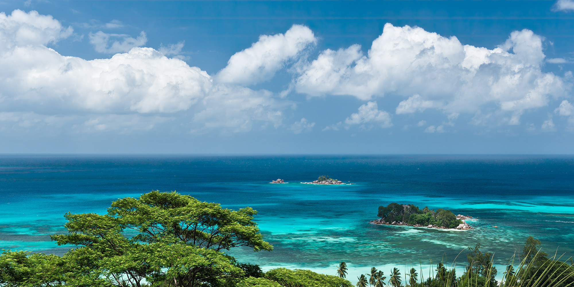 This breath-taking panorama of the Seychelles island of Praslin makes us long for faraway places.